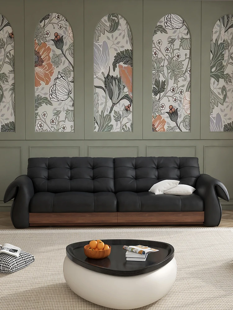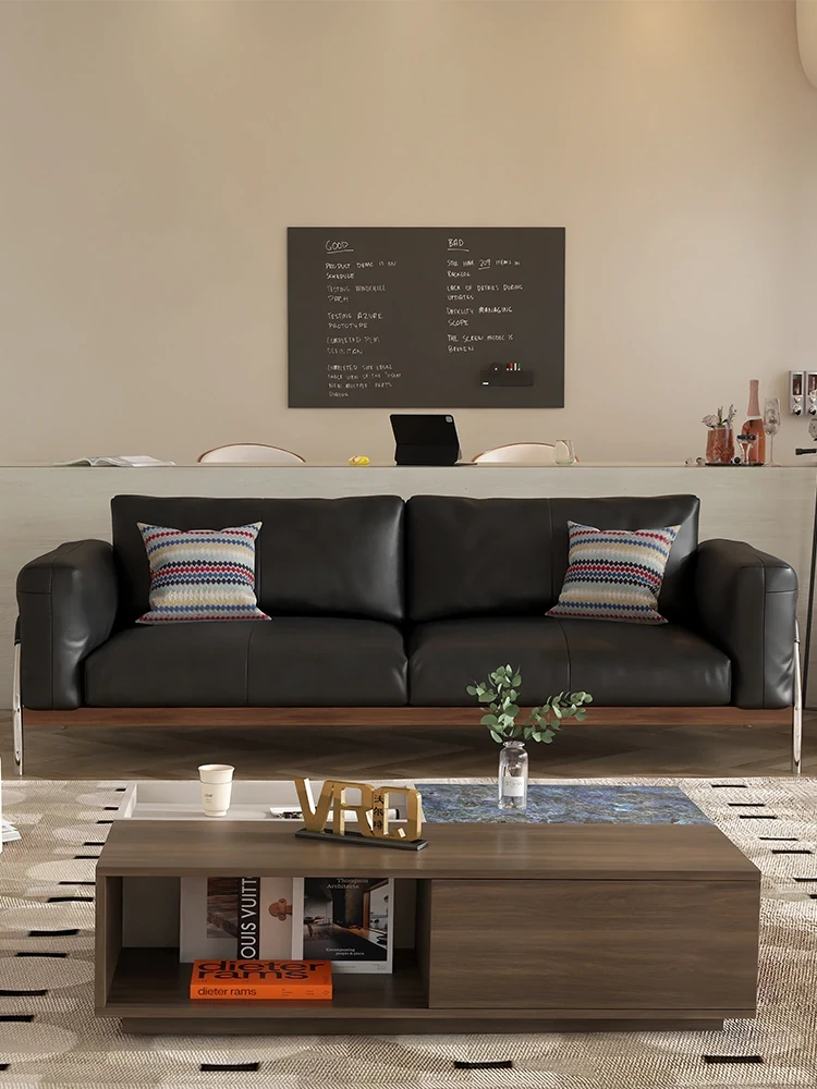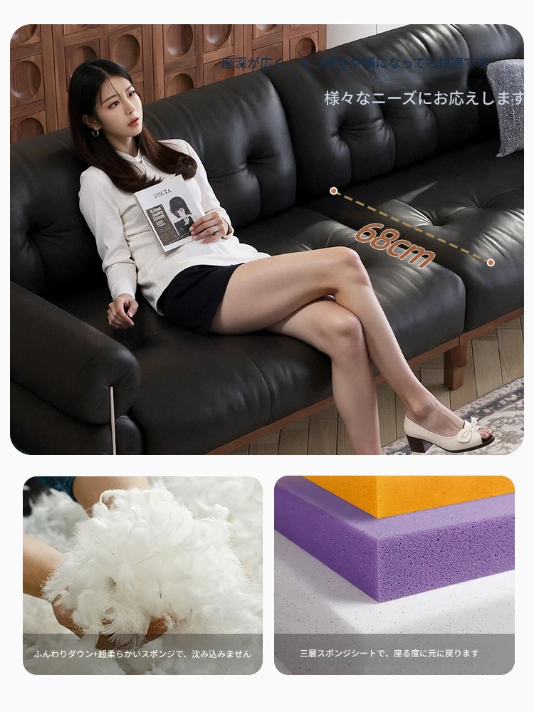 ウォルキ・イタリアンミニマリスト本革ソファ 小型リビングに最適 バウハウススタイルのレトロデザイン 高級感溢れるレザーソファで、快適なひとときを演出します!