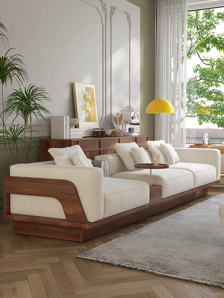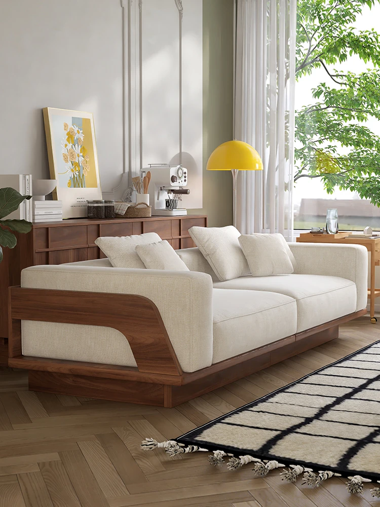北欧風レトロなウォールナット色の実木ソファ - 小さなリビングにぴったりのモダンデザイン、心地よい座り心地でおしゃれな空間を演出!