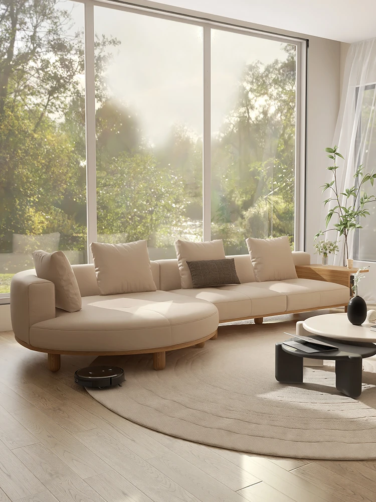 ウォルキウッド風カナリー本革ソファ モダンヴィラリビング用ラウンドデザインの貴妃ソファ アーチ型コーナー高品質無垢材使用 ソファで贅沢なひとときをお楽しみください!