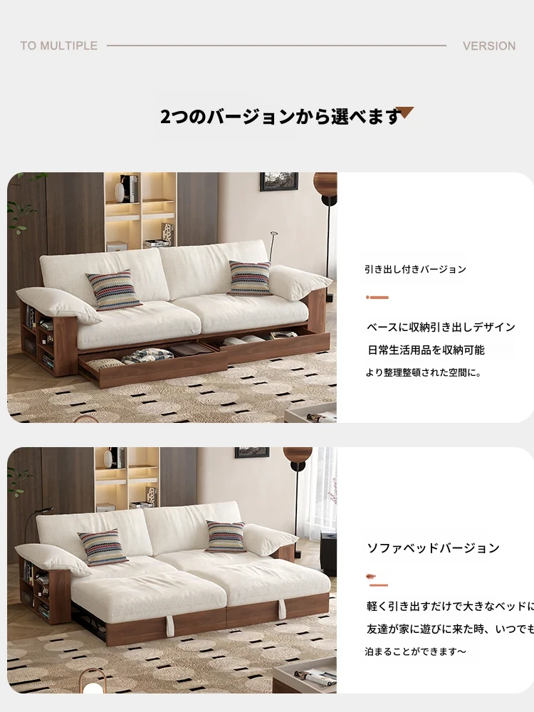 ウォルチ古風スタイルの無垢材ソファ、小型住宅向けの北欧レトロデザイン。折りたたみ可能で伸縮式、収納機能付きのソファベッドで、限られたスペースでも快適さとスタイルを両立!