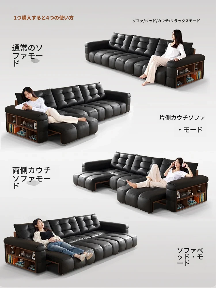 ウォルキ・ゼロ壁寄せ多機能本革ソファー、ラウンドソフトパッケージ、レトロ風のシンプルなデザイン、牛革製の収納ソファーです。おしゃれなリビングにぴったり!