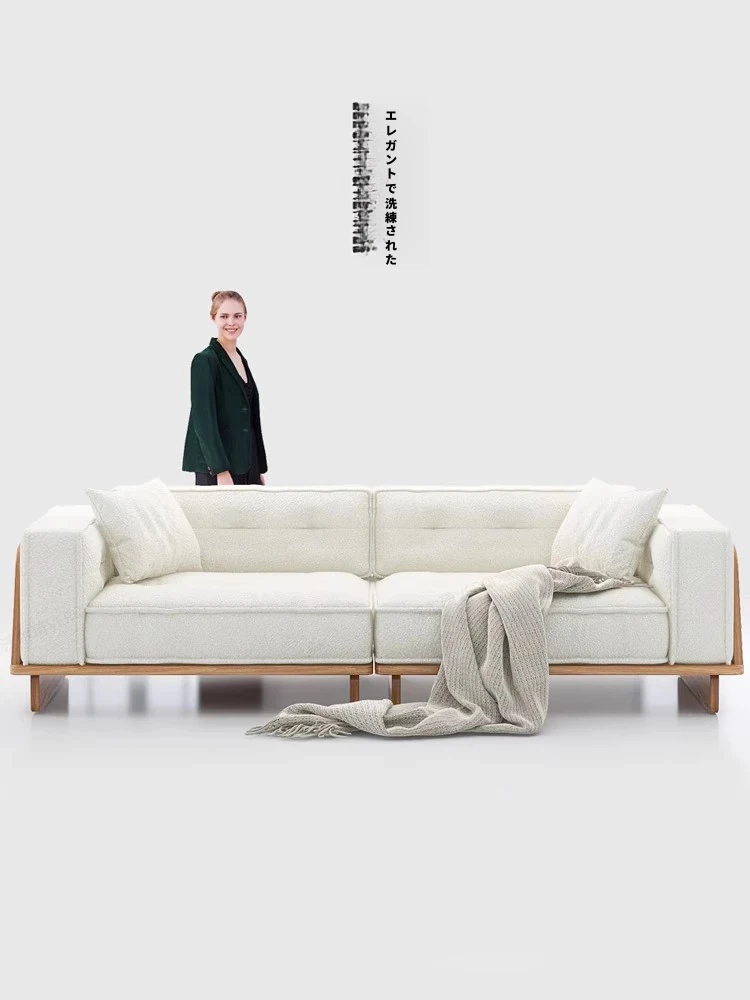 天然木材使用の和風ソファ|コンパクトな北欧スタイル|洗えるラムファー生地|小さなリビングに最適な現代的デザイン【実木製】