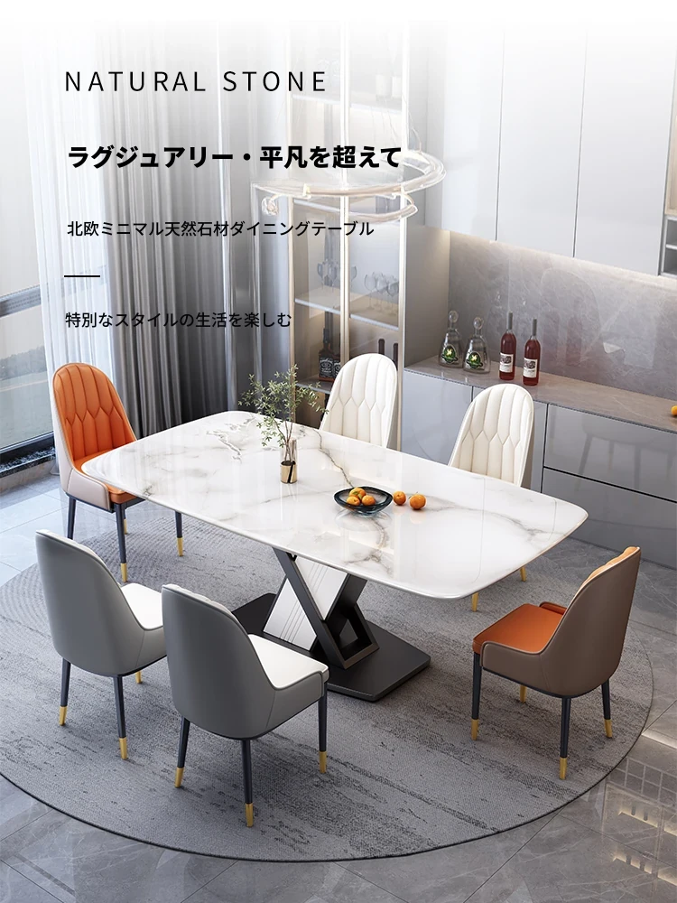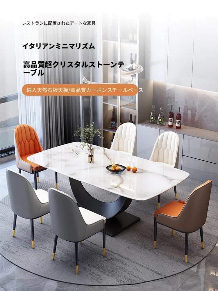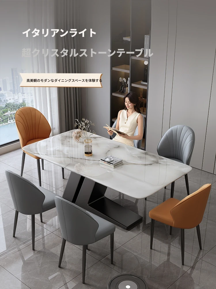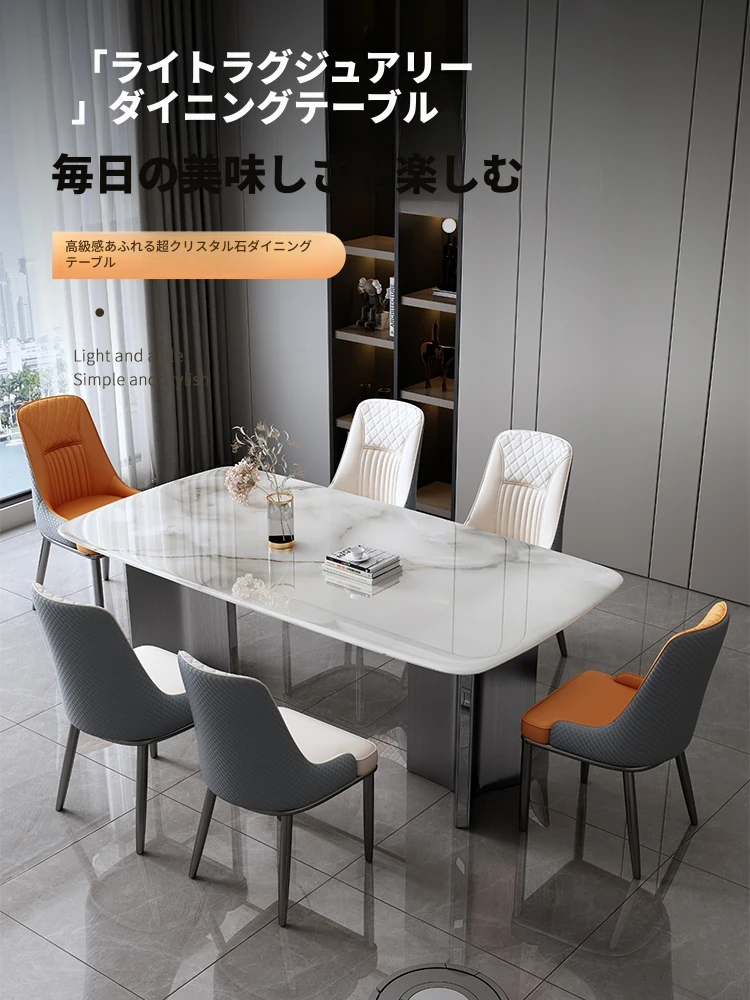 軽奢スタイルの超クリスタルストーンダイニングテーブル&チェアセット!モダンでシンプルなデザインの長方形マーブル食卓、狭いお部屋にもぴったりな家用家具。食事のひとときを特別に演出します!