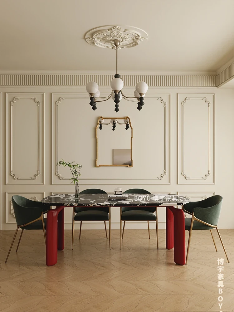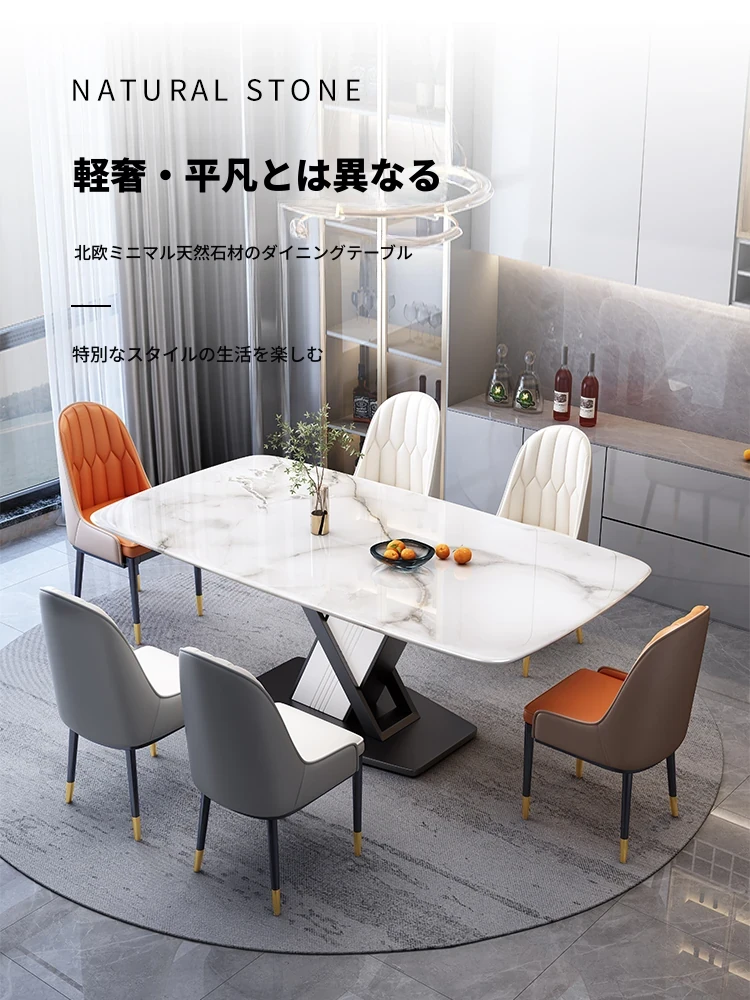 イタリアンミニマリズムの岩板ダイニングテーブルセット - モダンでシンプルなデザイン、小型家族向けの長方形テーブル。軽やかで高級感あふれる西洋料理用テーブルで、食卓を格上げします!