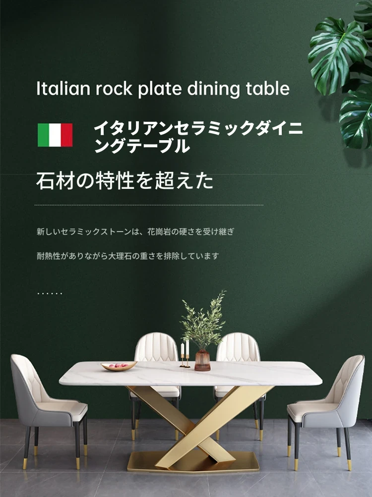 軽奢感溢れる超晶石ダイニングテーブルセット|微晶石製の現代的な長方形テーブル|小さな家でもおしゃれに!シンプルでスタイリッシュなデザインが魅力のダイニングアイテム。