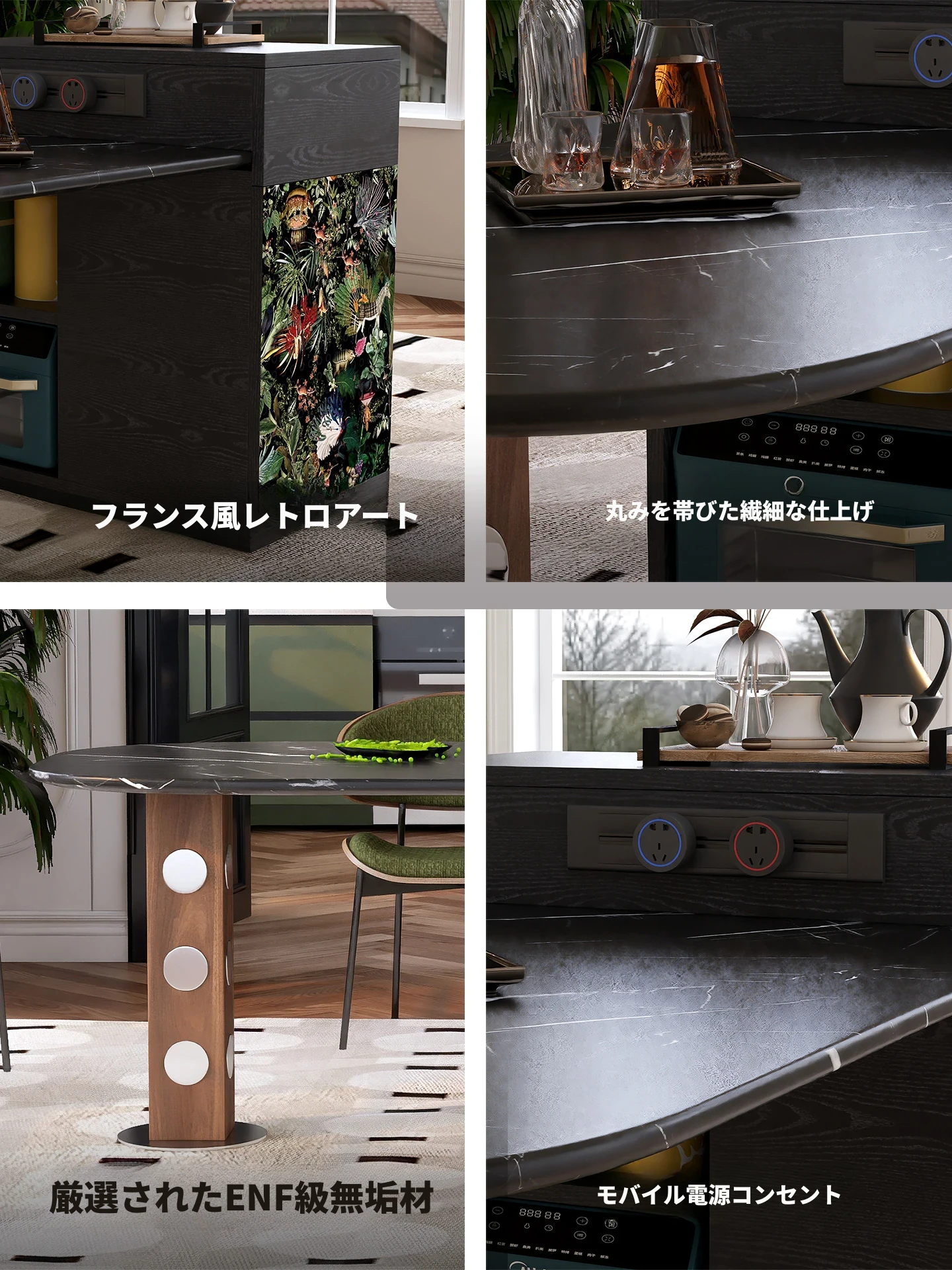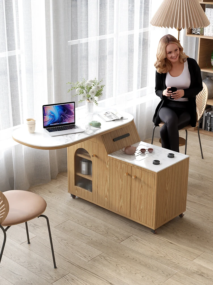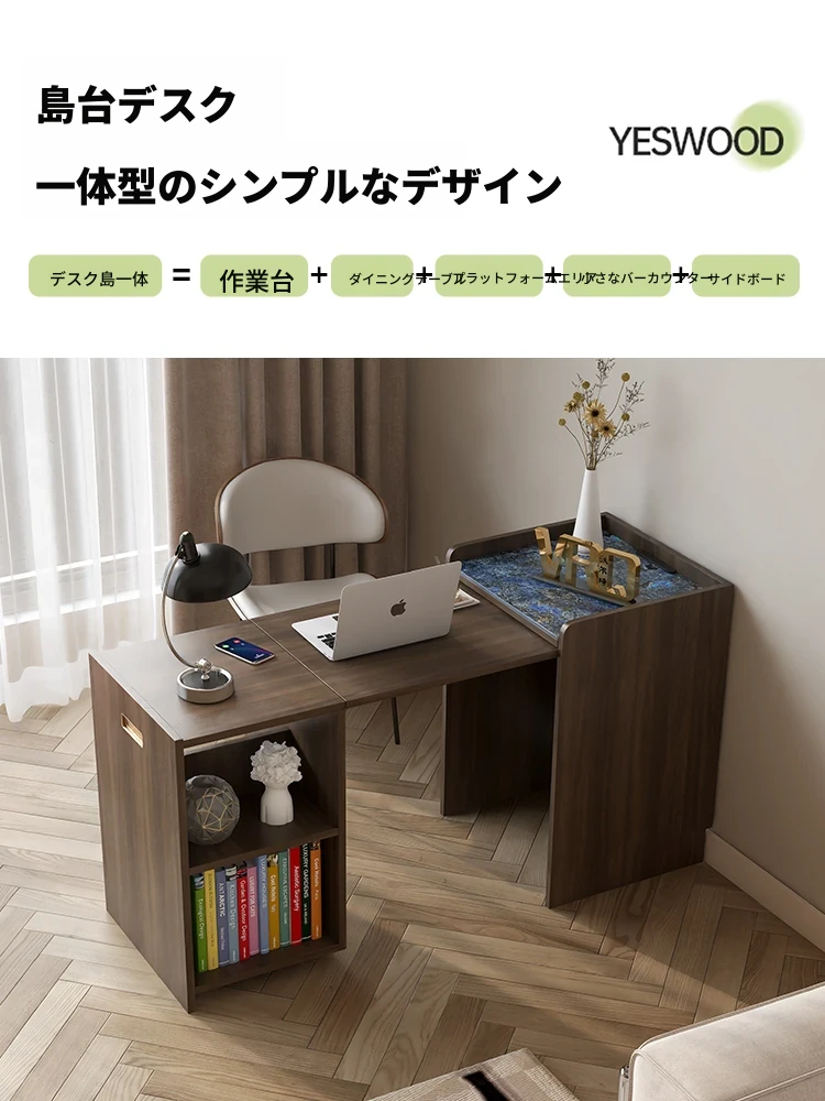 日本風の無垢材ロックプレートバーカウンター - モダンなリビングにぴったり!移動可能な間仕切りとダイニングテーブル機能を兼ね備えた小型住宅向けの多機能収納キャビネット。生活空間をスタイリッシュに演出します!