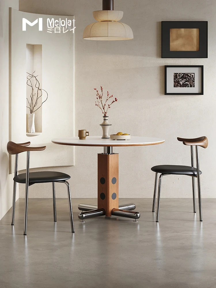 Melolat イタリアンレトロ 中古ダイニングテーブル ステンレス製 円形 ミーティングテーブル 北欧バウハウス デザイン テーブル 天然木使用 おしゃれで実用的!あなたの空間にぴったりの一品です。