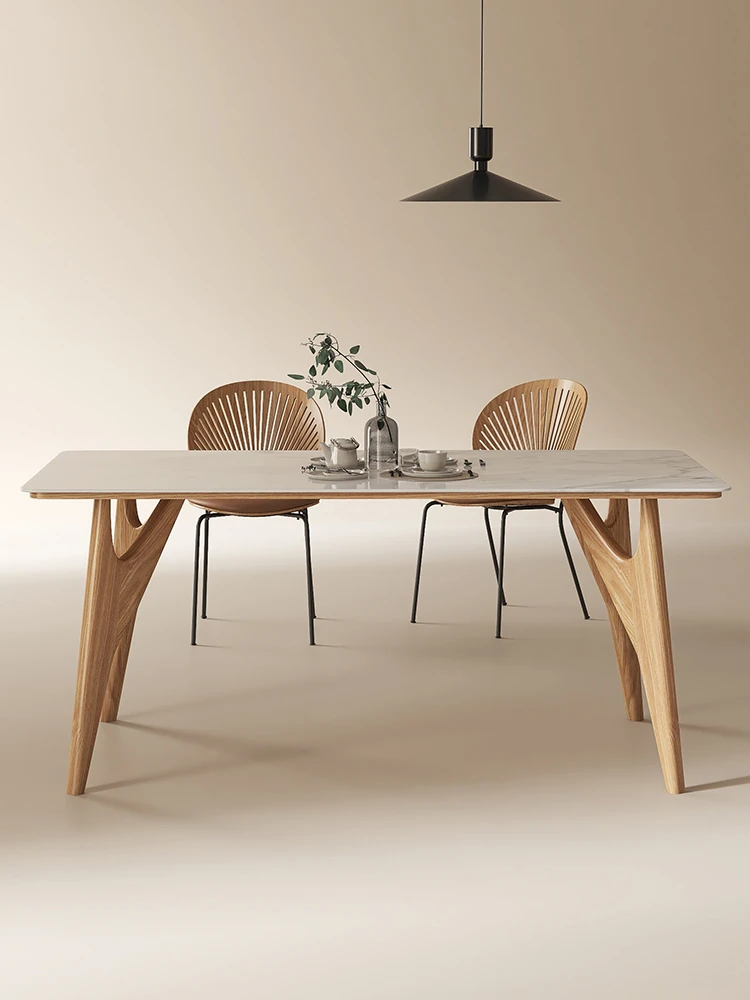 北欧スタイルの飛鳥ダイニングテーブル - 実木と岩板のコンビネーション、シンプルでモダンなデザイン。小型住宅にもぴったりの多機能デスクセット。家族や友人との素敵な食事の時間を演出します!