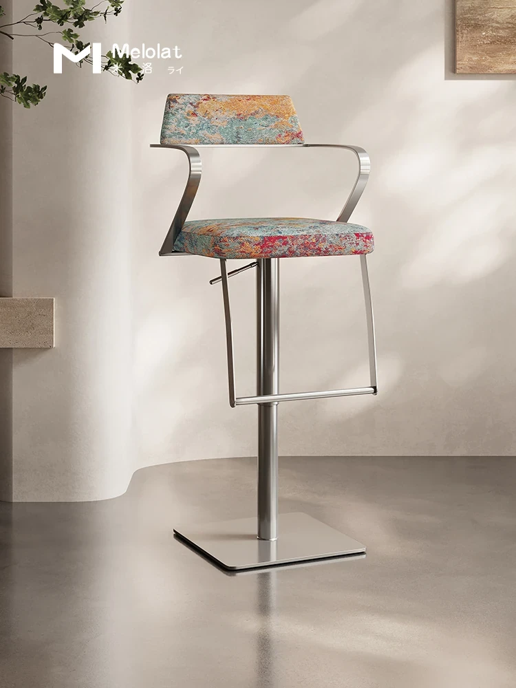 Meloaltイタリアンスタイルのステンレス製バースツール - 家庭用の昇降回転機能付きデザイナーズバーチェアで、スタイリッシュな空間を演出!