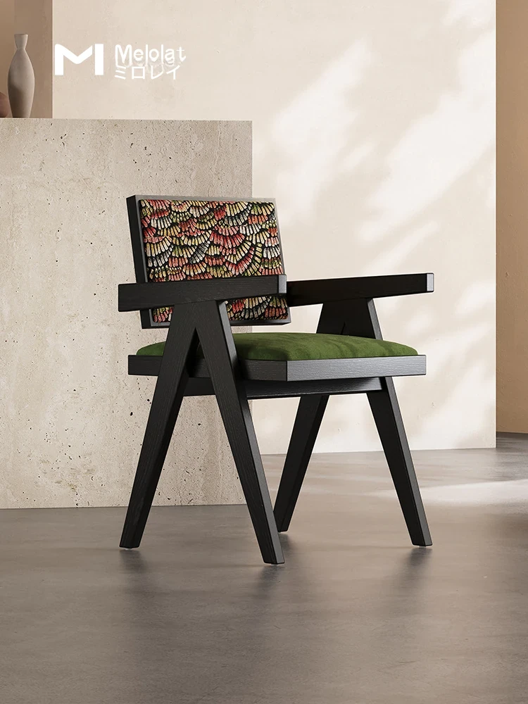 Meloaltデザインの無垢材ダイニングチェア|クリエイティブで軽やかなラグジュアリー|フレンチヴィンテージスタイルのアームレスト&バックレスト付き|おしゃれで快適なティーチェアに最適!