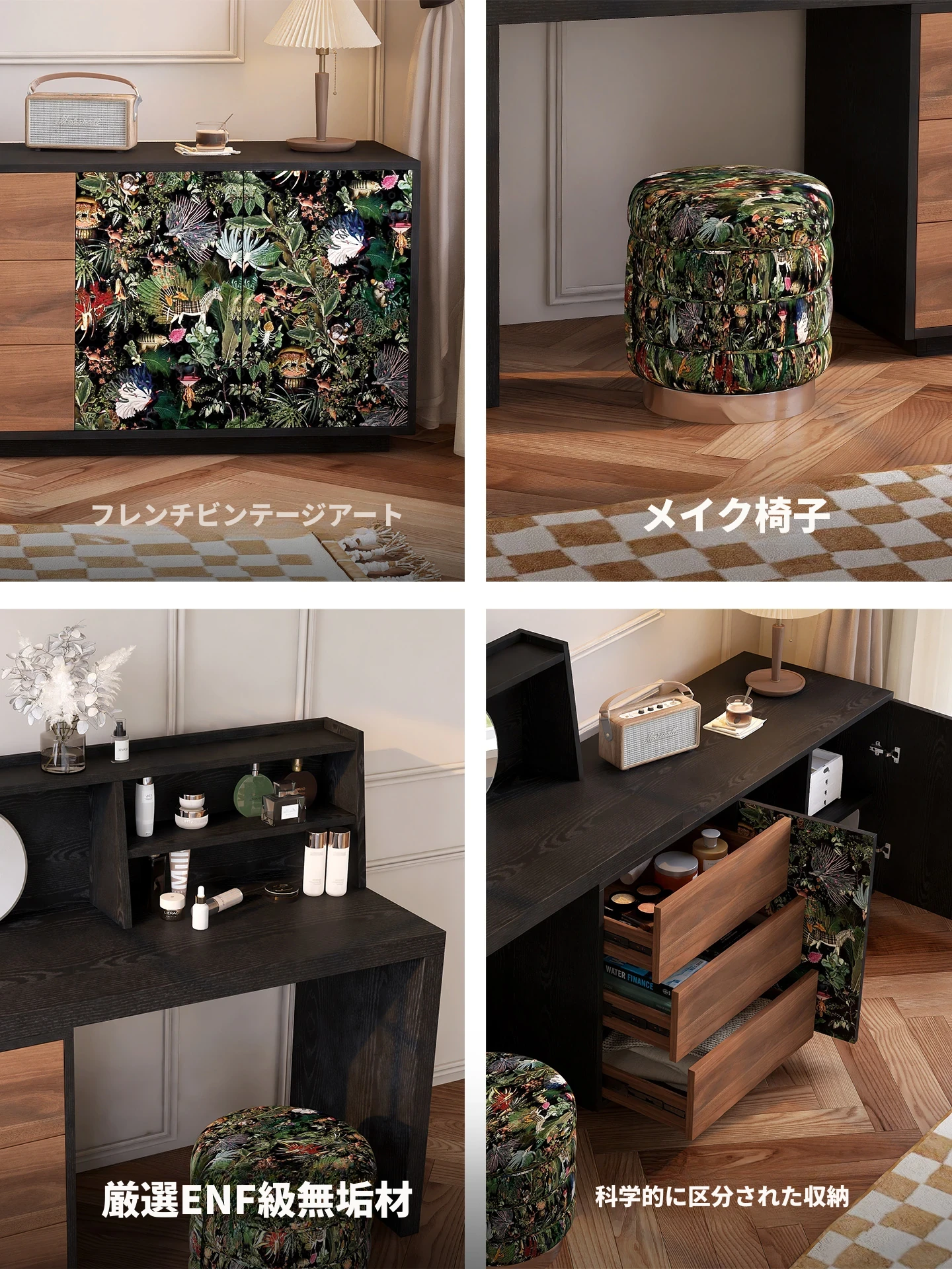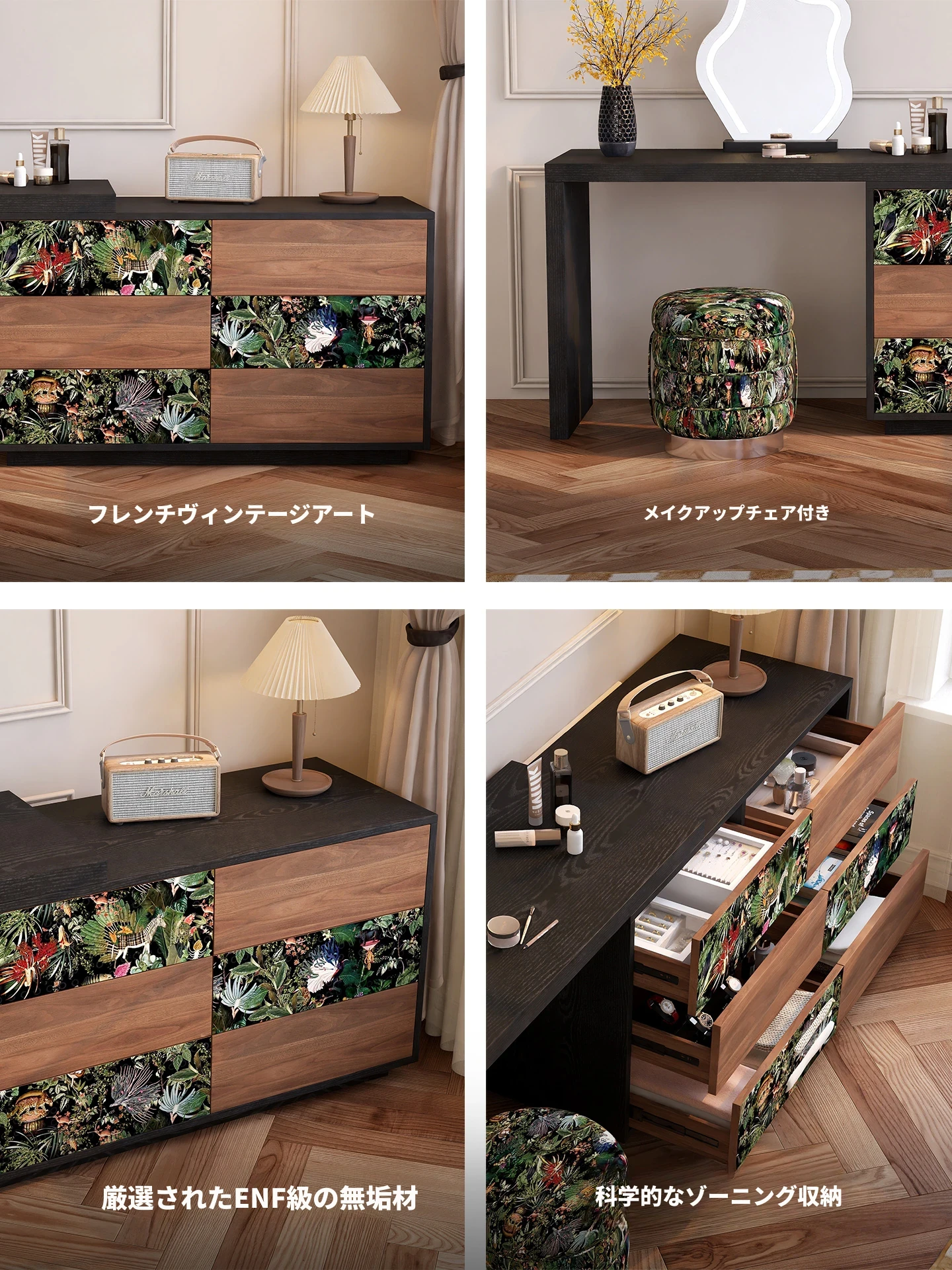 ウォルチュイ云锦ドレッサー・ネット人気の寝室用ベッドサイドキャビネット収納一体型メイクアップデスク・天然木製クリーム風デザインでおしゃれさと機能性を両立!