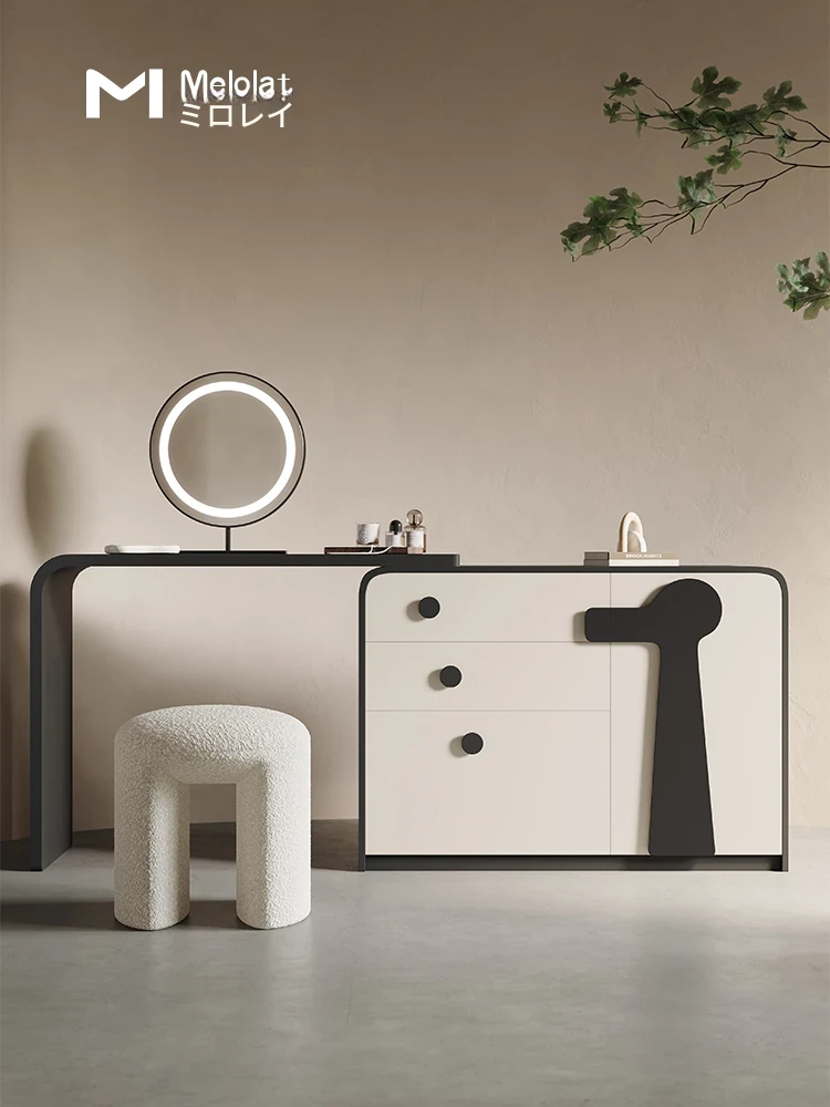Melolat イタリアンミニマリスト化粧台収納キャビネット - クリーム風の現代的でシンプルなデザイン、上質な化粧デスクであなたの寝室をスタイリッシュに演出!