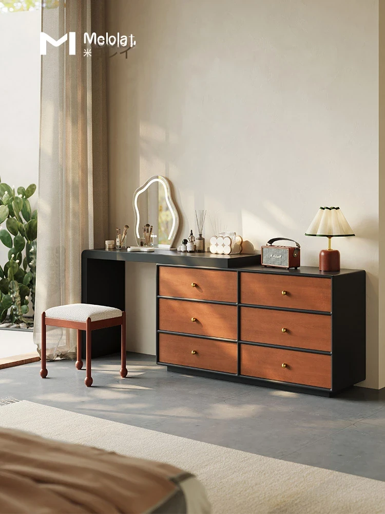 Melolat 中古スタイルの無垢材ドレッシングテーブル&チェスト一体型、回転収納付き。イタリアンシンプルデザインの化粧鏡テーブルで、あなたの寝室をスタイリッシュに演出します!