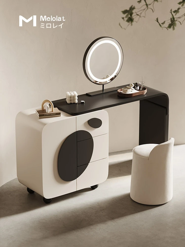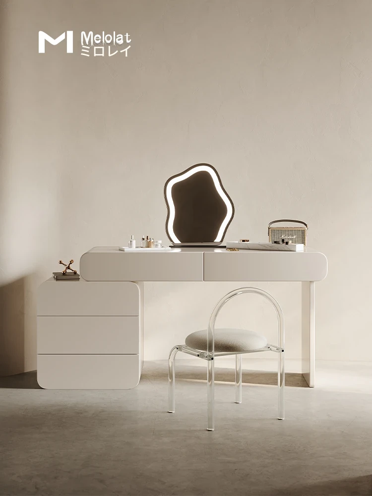 メロラット イタリアンシンプル コスメティックテーブル クレーム風 特許取得済み引き出し一体型 ベッドルーム収納キャビネット 新作ドレッサー鏡付き