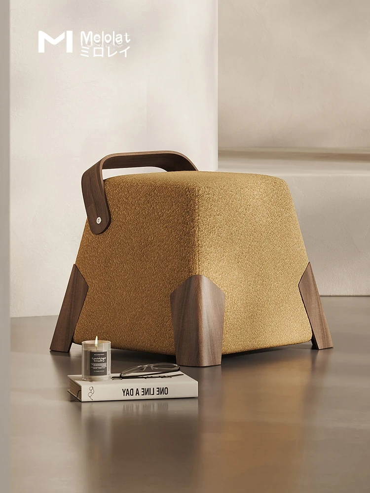 Melolatイタリアンミニマルクリーム風シューズスツール - モダンでシンプルなアメリカンラグジュアリーデザインの天然木製スツール。おしゃれで使い勝手抜群、あなたの空間を格上げします!