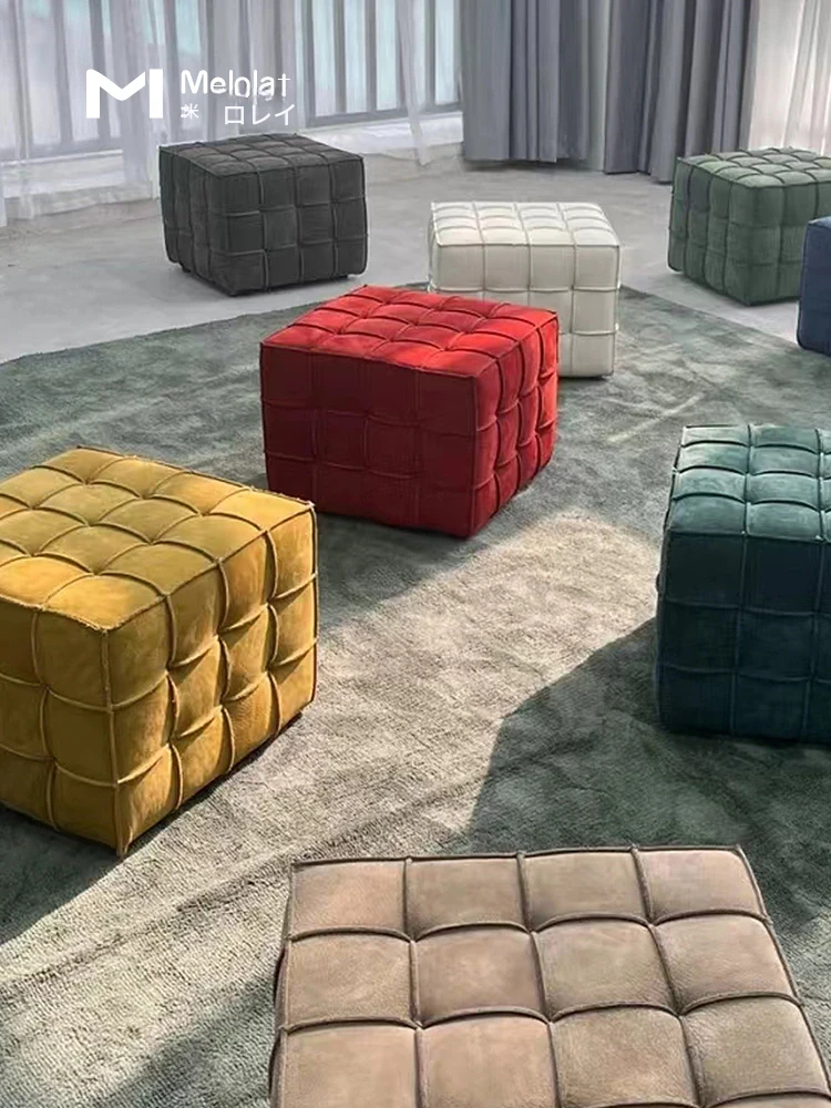メロラット交換シューズベンチ|おしゃれで実用的な軽奢なデザイン|寝室やドレッサー、クローゼット、リビングにぴったりの四角い低いスツール|空間を彩るパズルデザインで、スタイリッシュなインテリアを実現!
