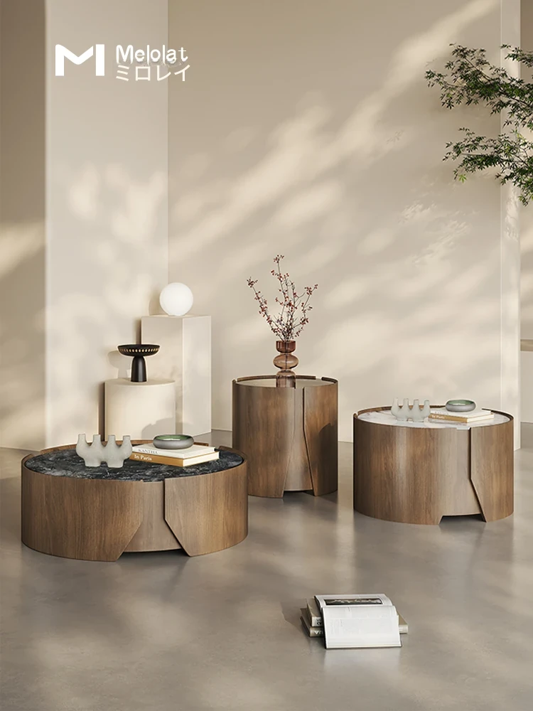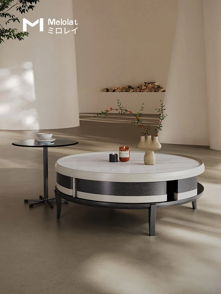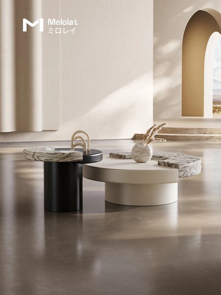 Melolatオリジナル発表!イタリアンミニマリズムのコーヒーテーブルセット。洗練されたシンプルさと贅沢感を兼ね備えたラウンドテーブル。リビングルームを格上げするスタイリッシュなアイテムです。