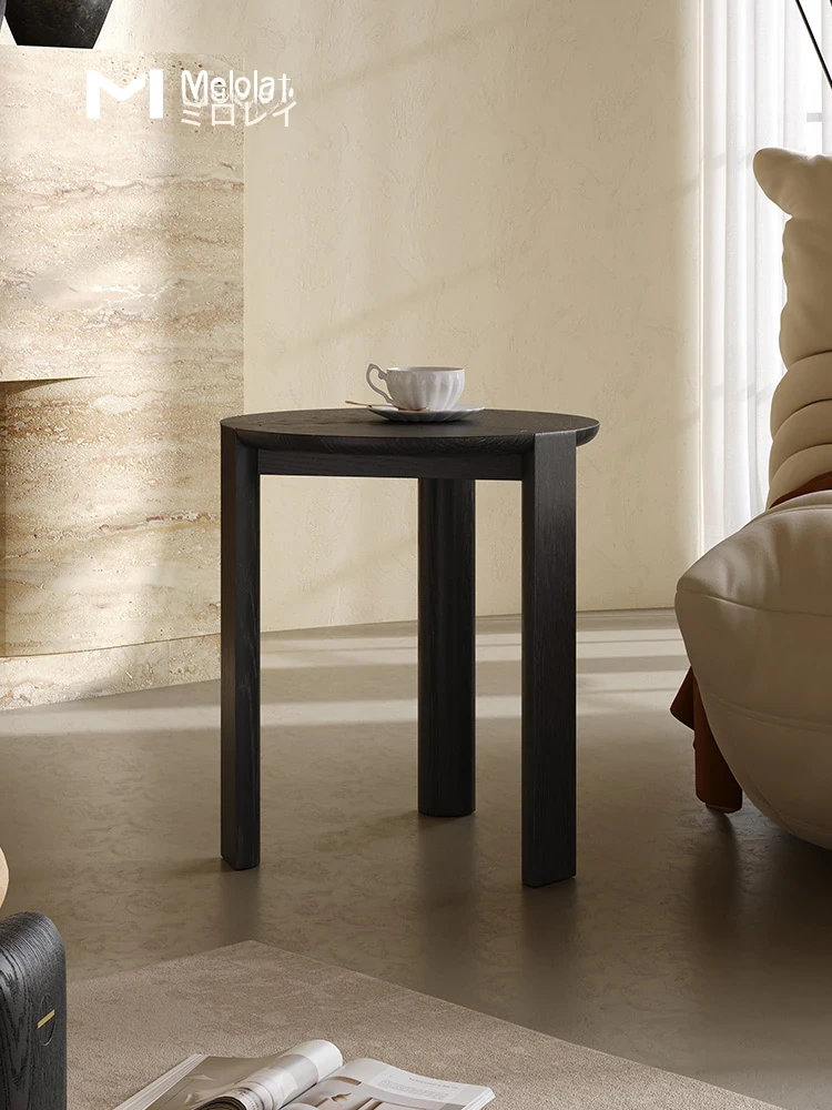 Melolatアメリカンヴィンテージラウンド無垢材サイドテーブル - 和の美しさを感じる侘寂風デザイン、リビングや小さなスペースに最適なアイテム。高品質の輸入オーク材を使用し、どんなインテリアにもマッチします!