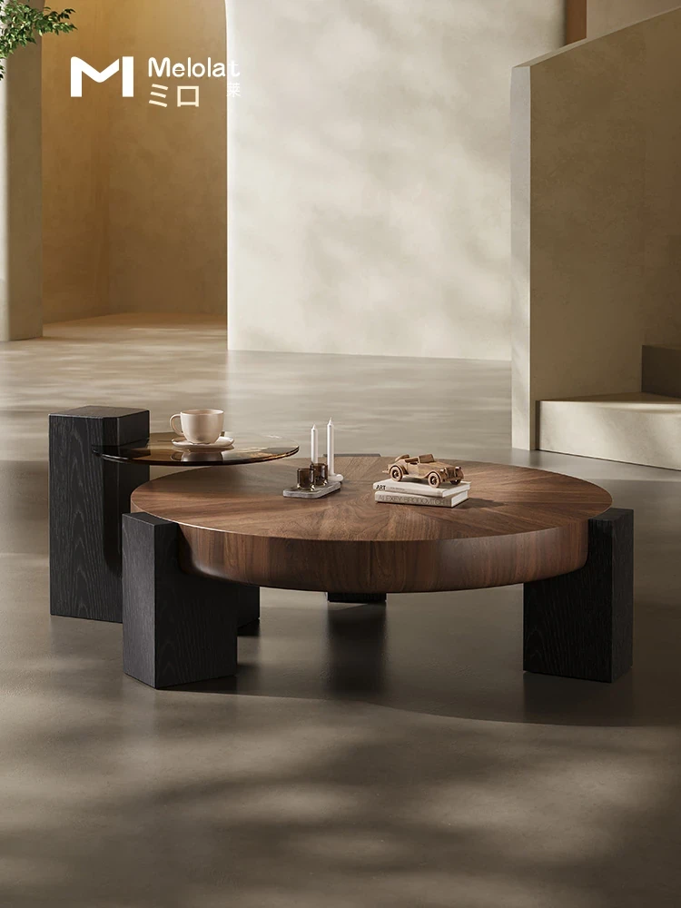 Melolat イタリアンミニマリスト 円形 コーヒーテーブルセット 輸入スモーキーウッド 大小様々なリビングにぴったりなデザイン 家庭用 デザイナー家具