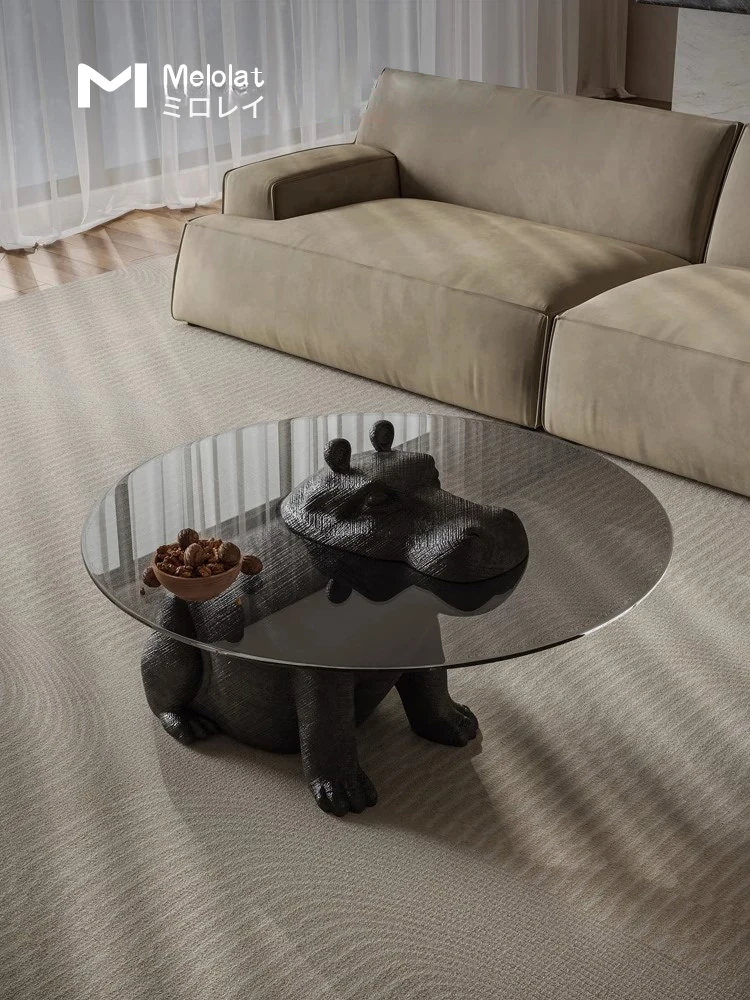 猫爪デザインのリビング用コーヒーテーブル|軽やかな高級感とモダンなシンプルさ|小型スペースにもぴったりな円形ガラステーブル|環境に優しい輸入塗料使用