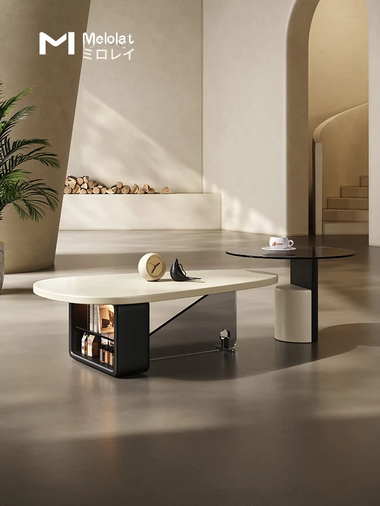 Melolatオリジナルデザイン異形コーヒーテーブル - イタリアンミニマリズムと侘寂を融合したリビングルームにぴったりのラグジュアリーコーヒーテーブル!おしゃれで洗練された空間を演出します。