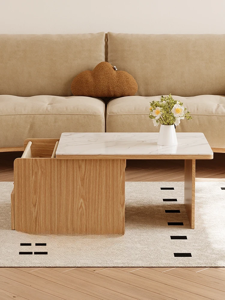 2023年新作!シンプルでスタイリッシュな日本製無垢材コーヒーテーブル。小型リビングや家庭にぴったりの引き出し付きスレートテーブル。洗練されたデザインで空間を引き立てます。