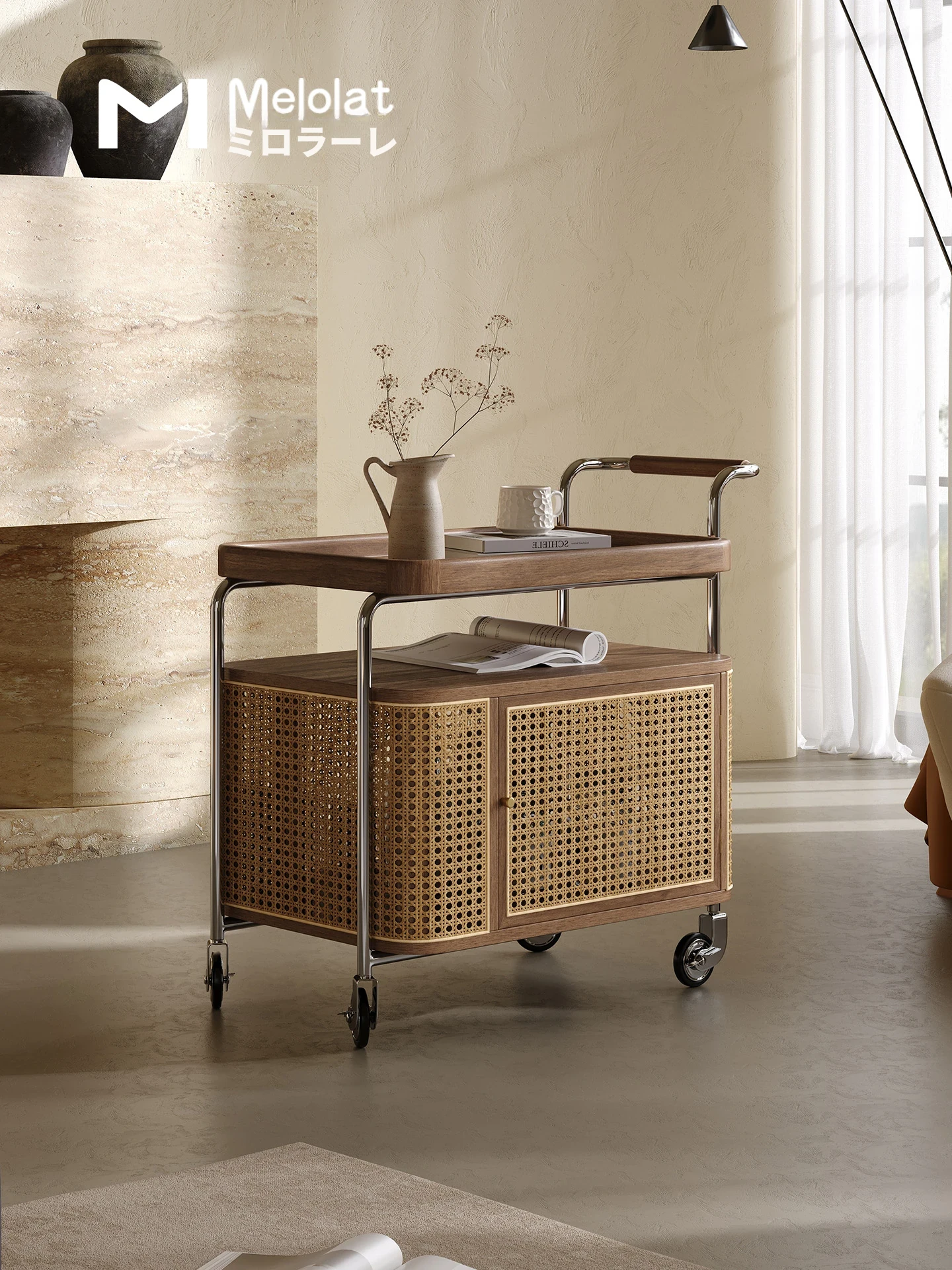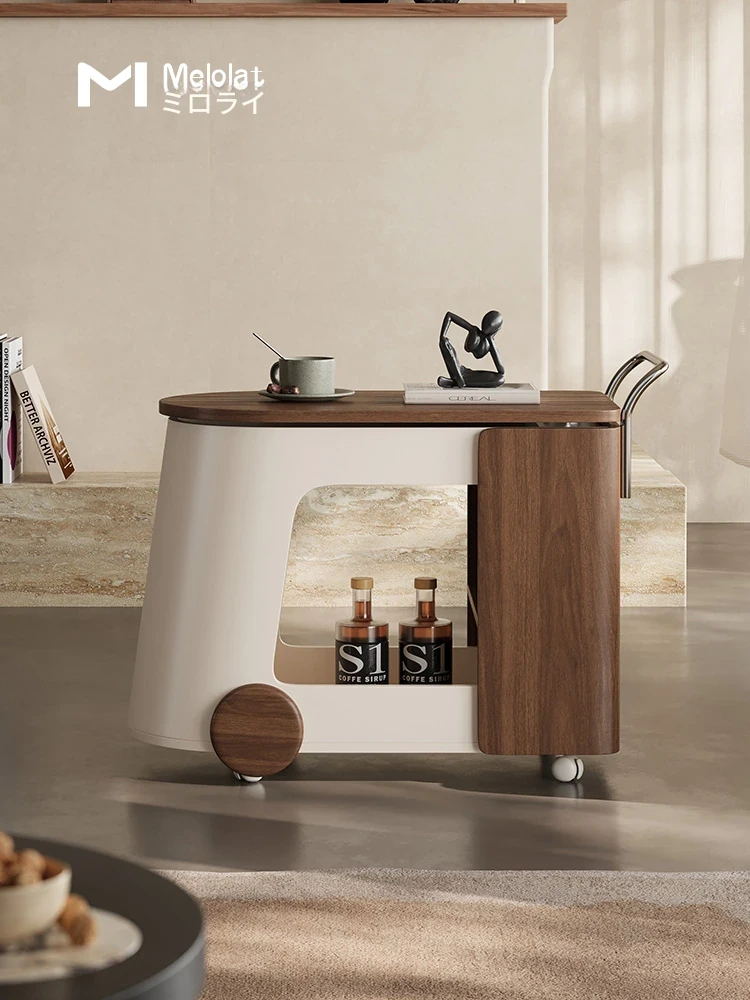 Melolatデザイナー特許の小型キャリーカート、ウォールナットウッドのエッジ仕上げ、イタリアンスタイルの新作クリエイティブ移動収納ラック!スタイリッシュで機能的、どんなインテリアにもぴったり!
