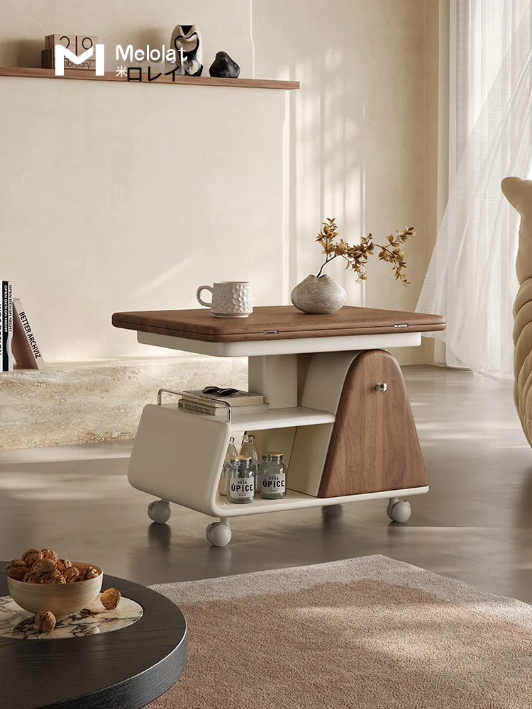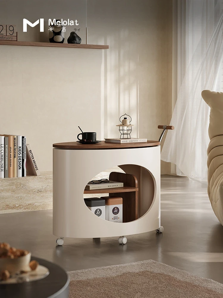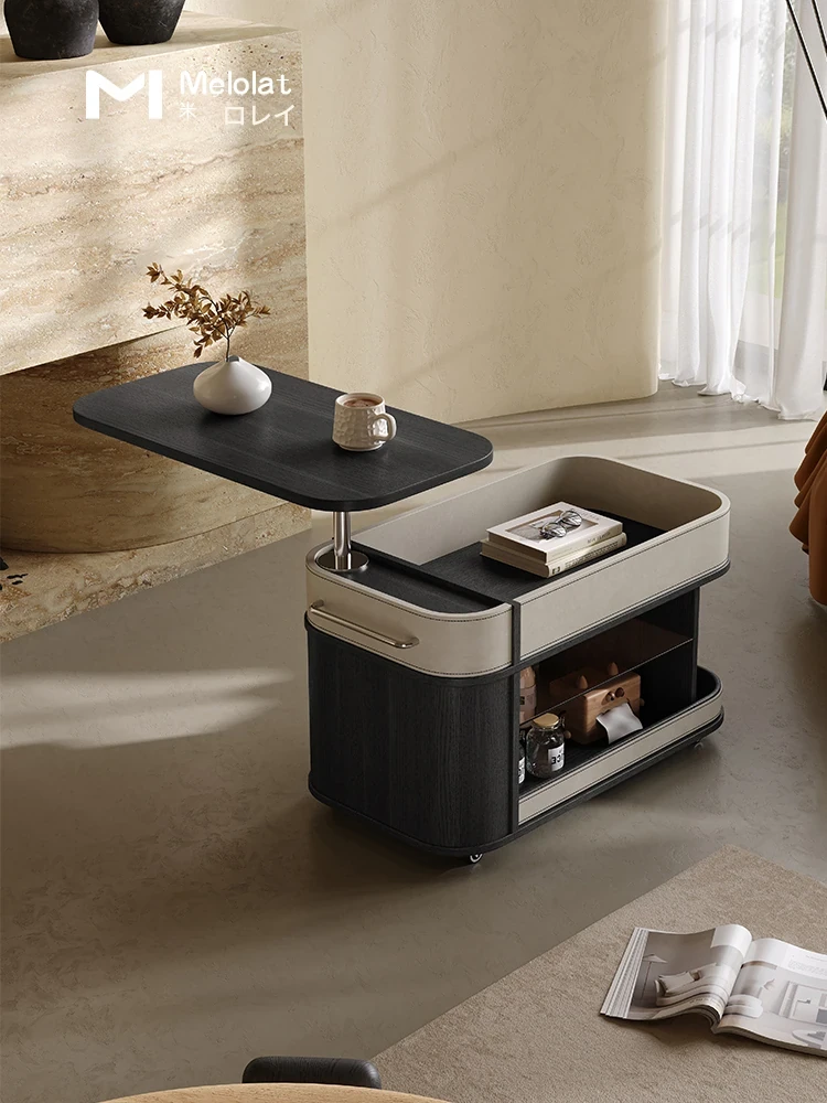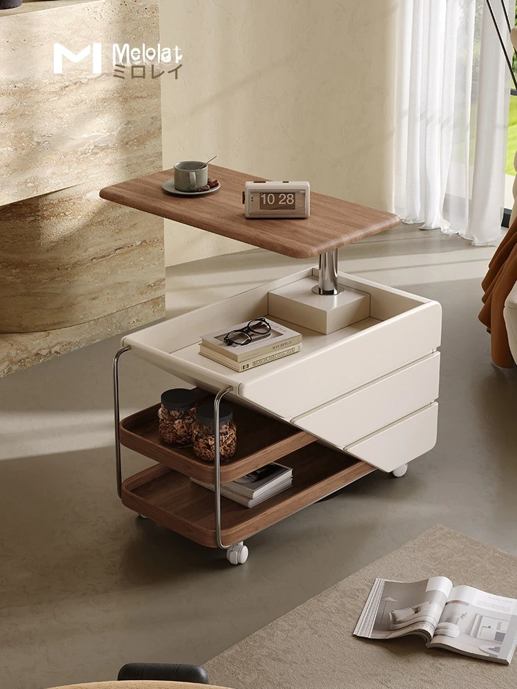 Melolaイタリアンミニマリズム移動式サイドテーブル - 小型リビングに最適!回転昇降機能付きソファサイドキャビネット、限られたスペースでもスタイリッシュに使える便利なアイテム!