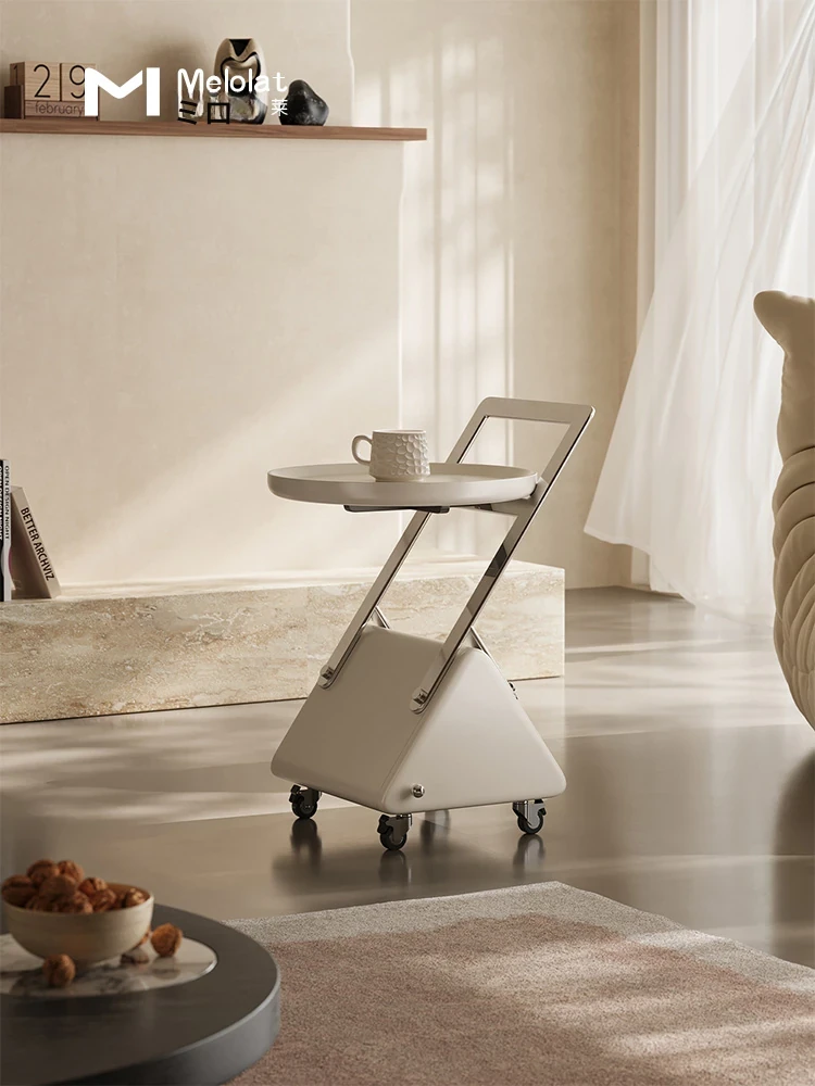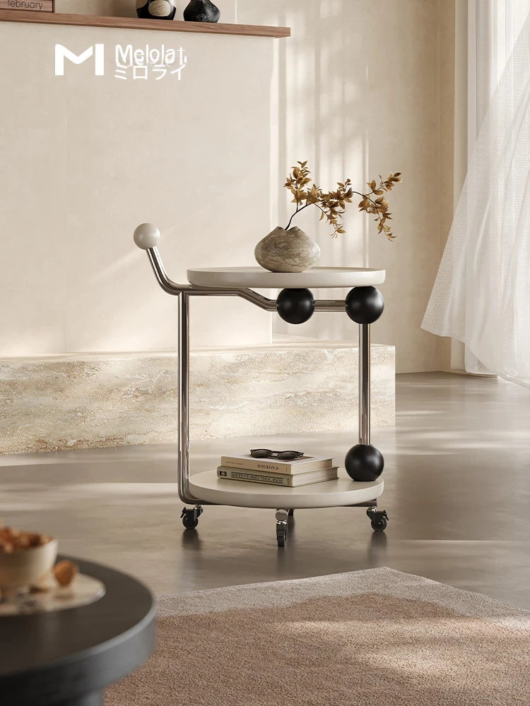Melolatオリジナル発表 イタリアンスタイルの移動可能なキャスター付きデザイナーズリビング用ラグジュアリーサイドテーブル