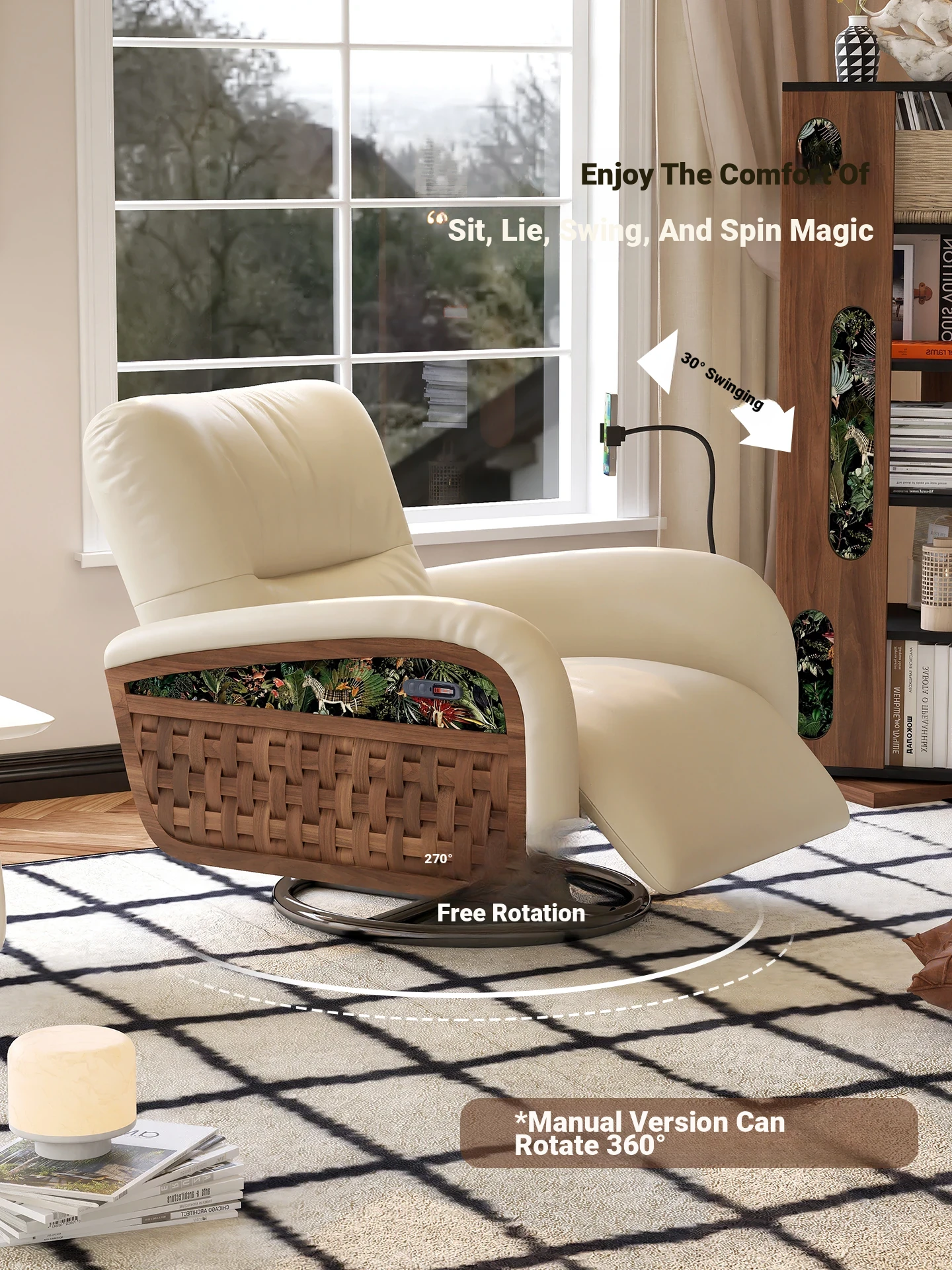 Wolqi Vintage Rattan Single Sofa Chair - Electric Rotating Recliner, Multi-Functional Leisure Rocking Chair for Relaxation and Sleeping