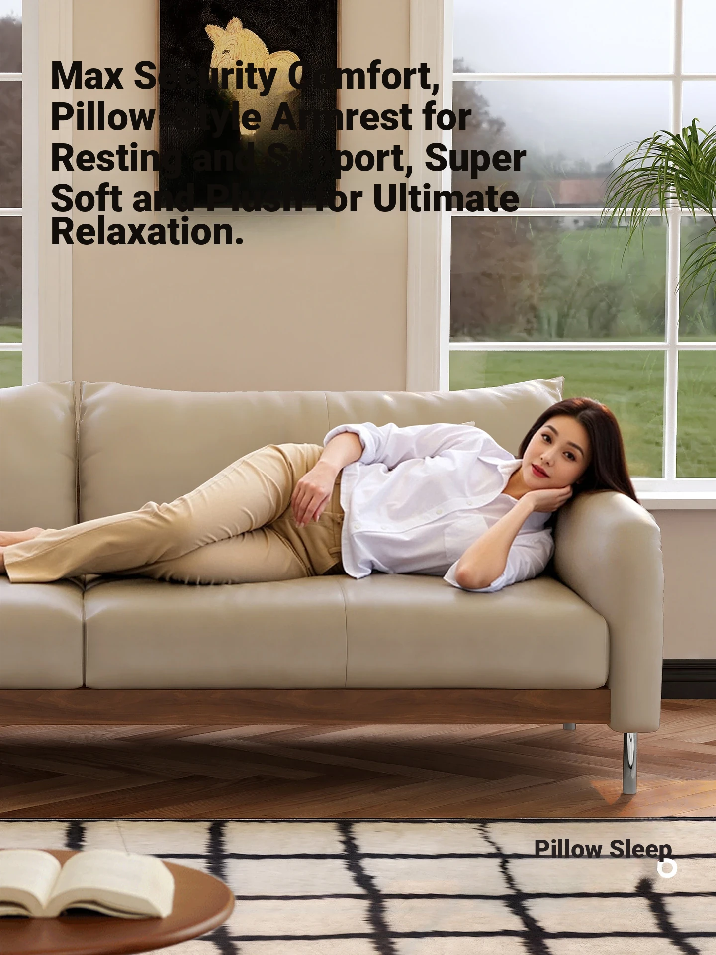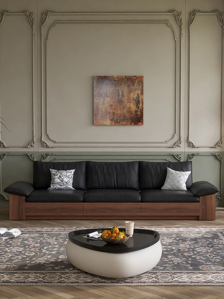 Modern Minimalist Solid Wood Sofa in Natural Leather - Japanese Style, Perfect for Small Living Rooms, Multi-functional Storage with Cloud Cream Aesthetic