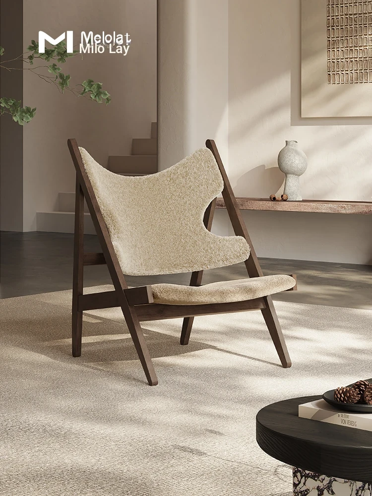 Melolat French Vintage Solid Wood Sofa Chair - Creamy Lamb Wool Mid-Century Nordic Light Luxury Single Leisure Chair