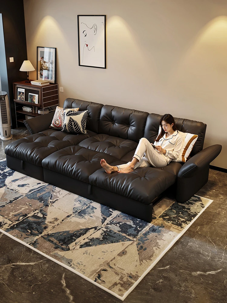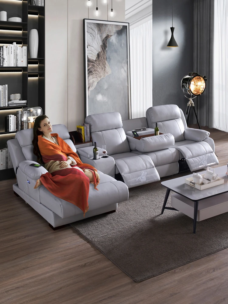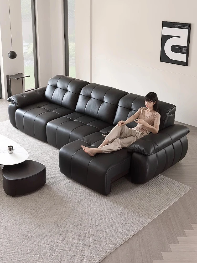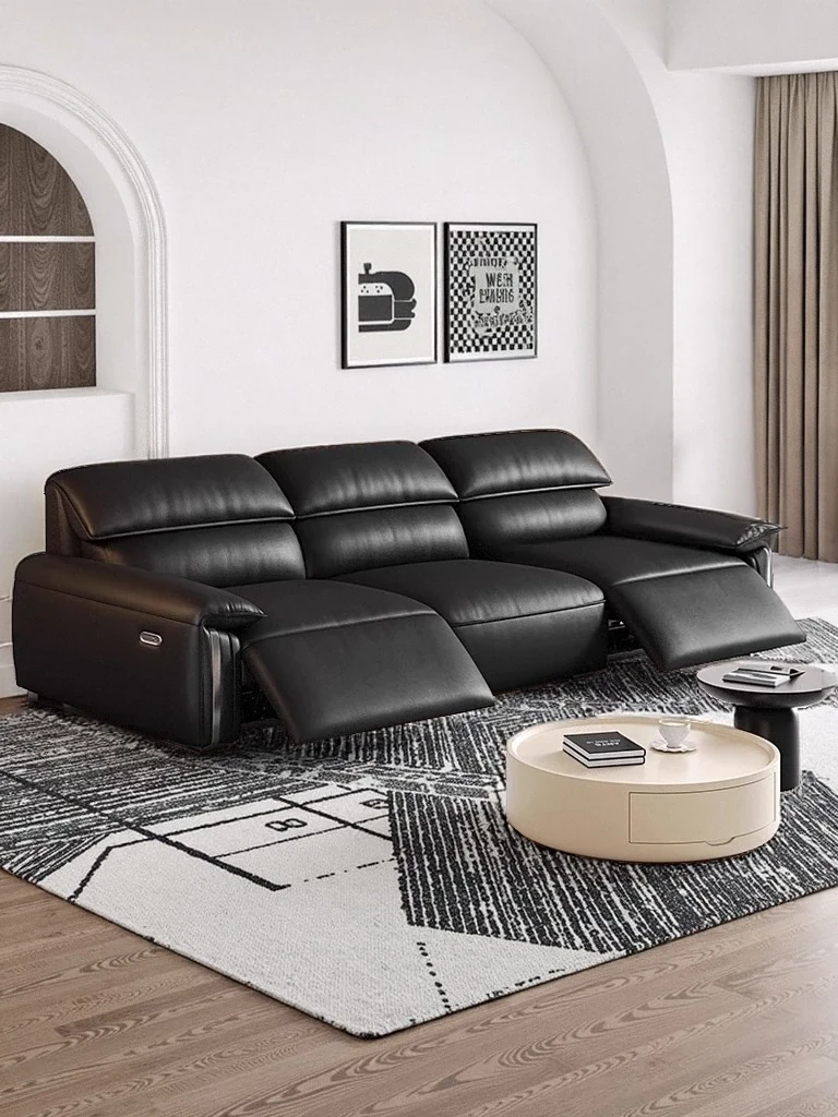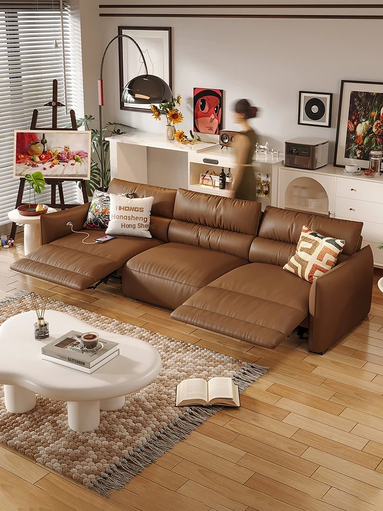 Premium Genuine Leather Sofa with First-Class Cowhide - Multifunctional Electric Cabin for Modern Minimalist Living Room, Perfect for Small to Medium Spaces in Luxurious Style