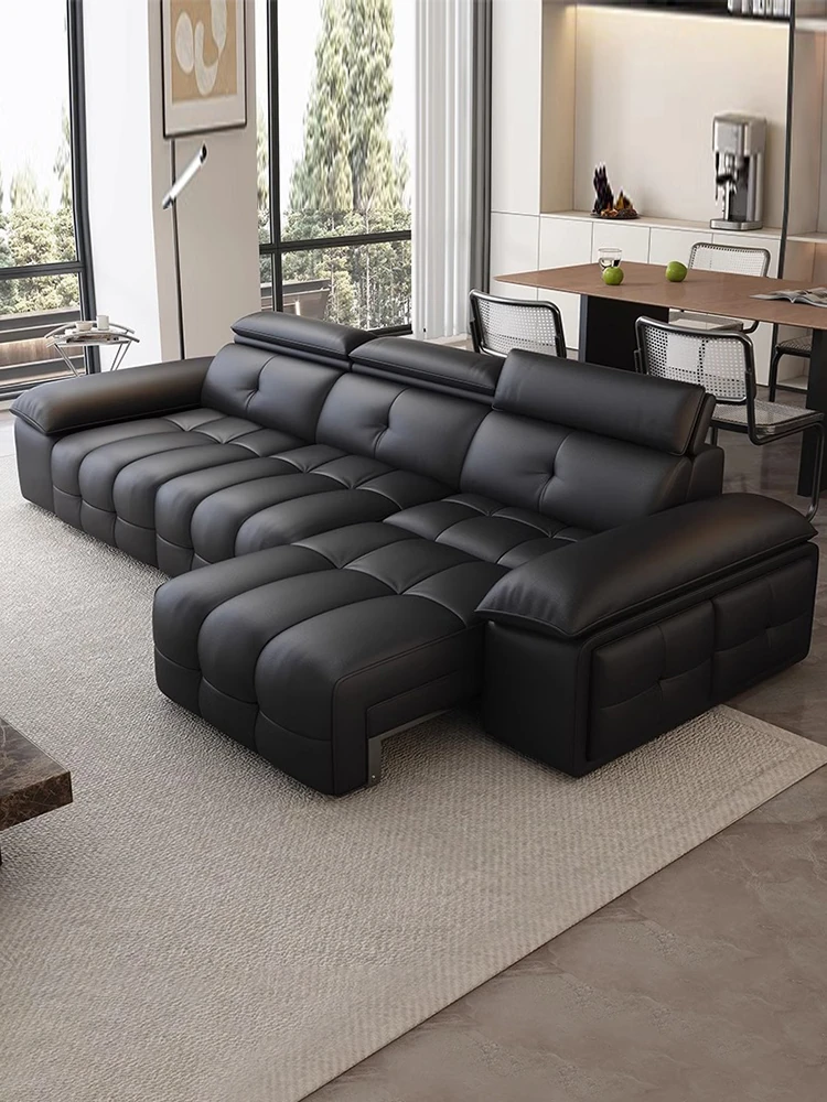Modern Leather Sofa with Stretchable Electric Function - Italian Style, Wall-Free Design for Living Room, Made from High-Quality Top-Grain Cowhide
