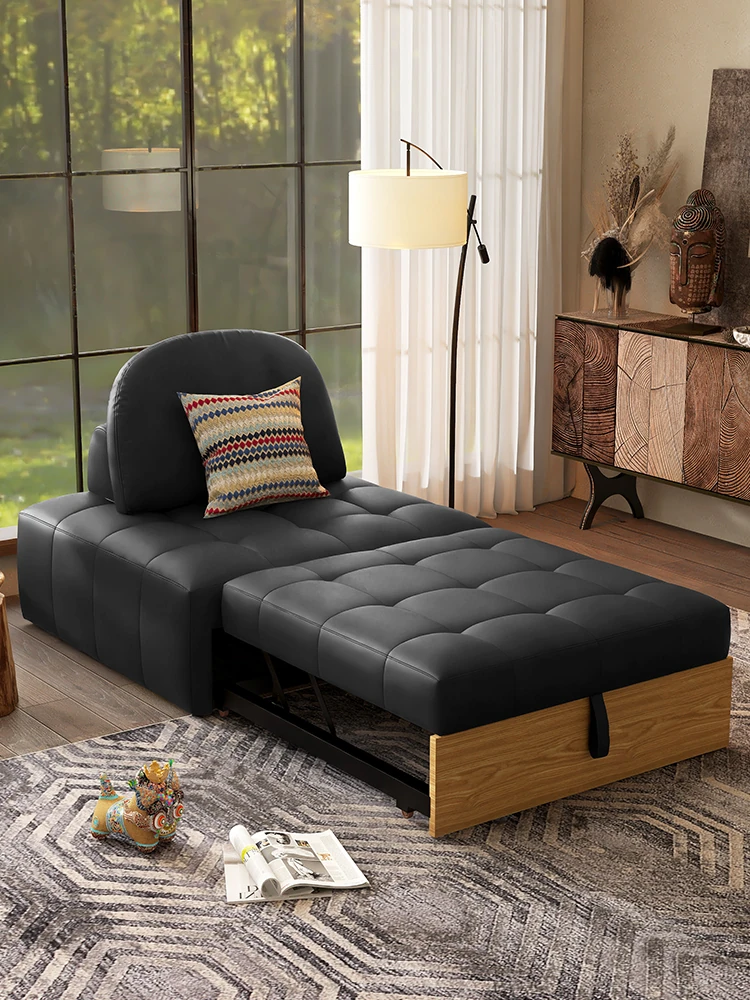 Vintage Leather Pull-Out Sofa Bed - Walqi Cream-Style Single Bed for Small Japanese Living Rooms, Versatile and Space-Saving Design