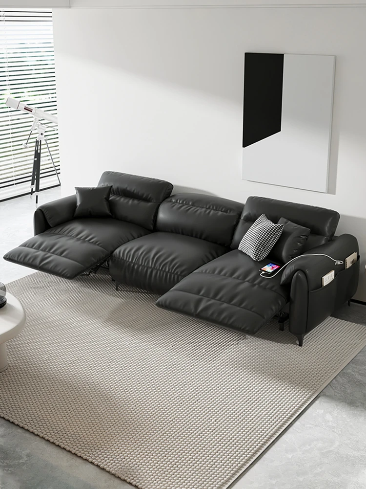 Versatile Electric Sofa for Modern Living Rooms - Minimalist Space Capsule Design, Italian Style, Perfect for Small Apartments, Featuring Straight-Line Genuine Leather Upholstery.