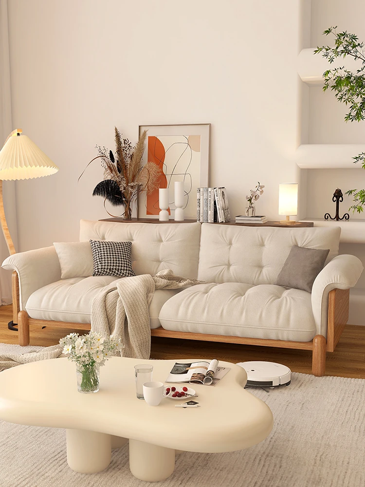 Wabi-Sabi Vintage Fabric Sofa – Minimalist Three-Seater Cotton-Linen Duck Down Couch for Small Apartments and Cozy Living Rooms – Perfect for Modern Homestays