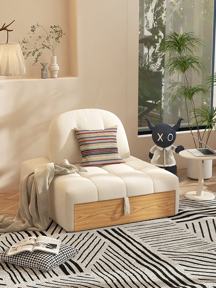 Woqi Japanese Cream Puff Style Expandable Fabric Sofa - Versatile Retro Single Bed for Small Living Rooms, Perfect for Pull-Out Functionality and Cozy Spaces