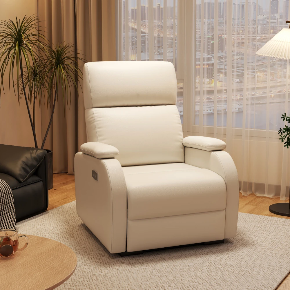 RedSun Cream Wind Electric Recliner Sofa - Italian Minimalist Design, Genuine Leather, Stretchable Functionality for Your Living Room
