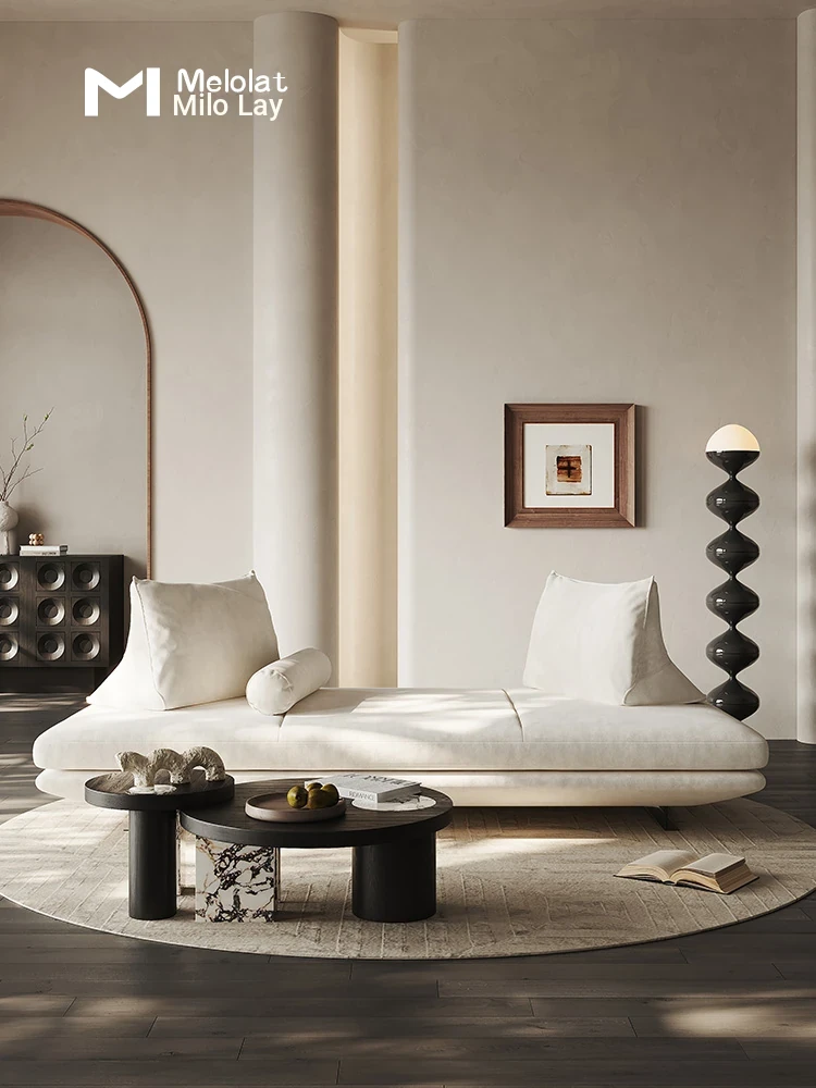 Melolat Artistic Space Prado Minimalist Straight-Line Upholstered Sofa - White Vintage Creative Design