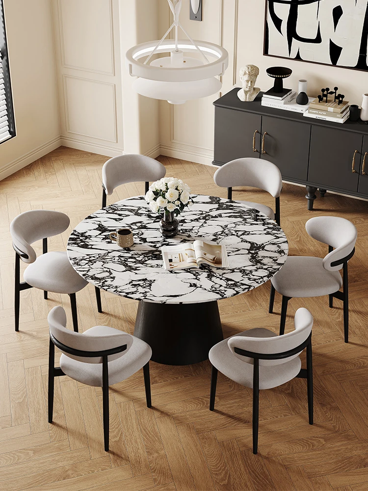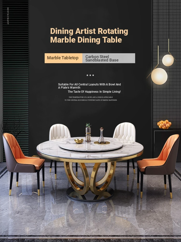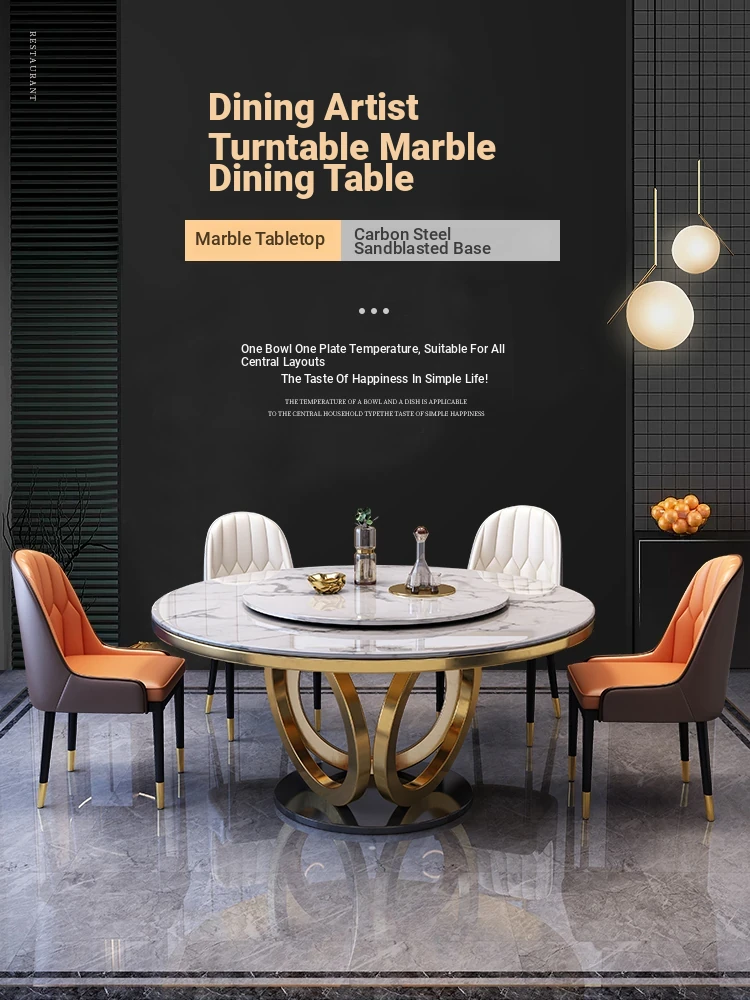 Modern Minimalist Round Marble Dining Table Set with Lazy Susan - Elegant Light Luxury Design for Small Spaces, Perfect for Stylish Home Dining