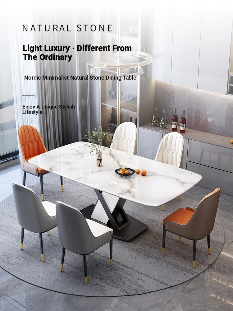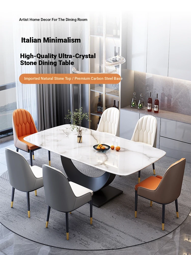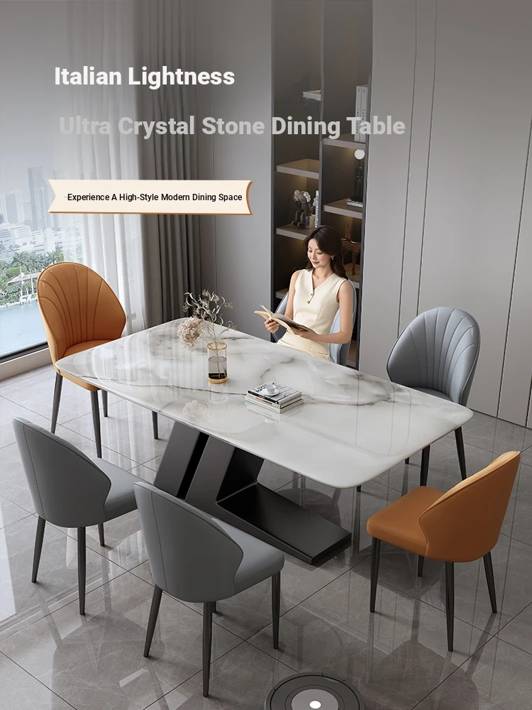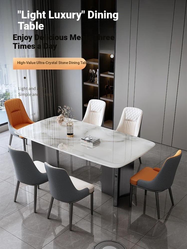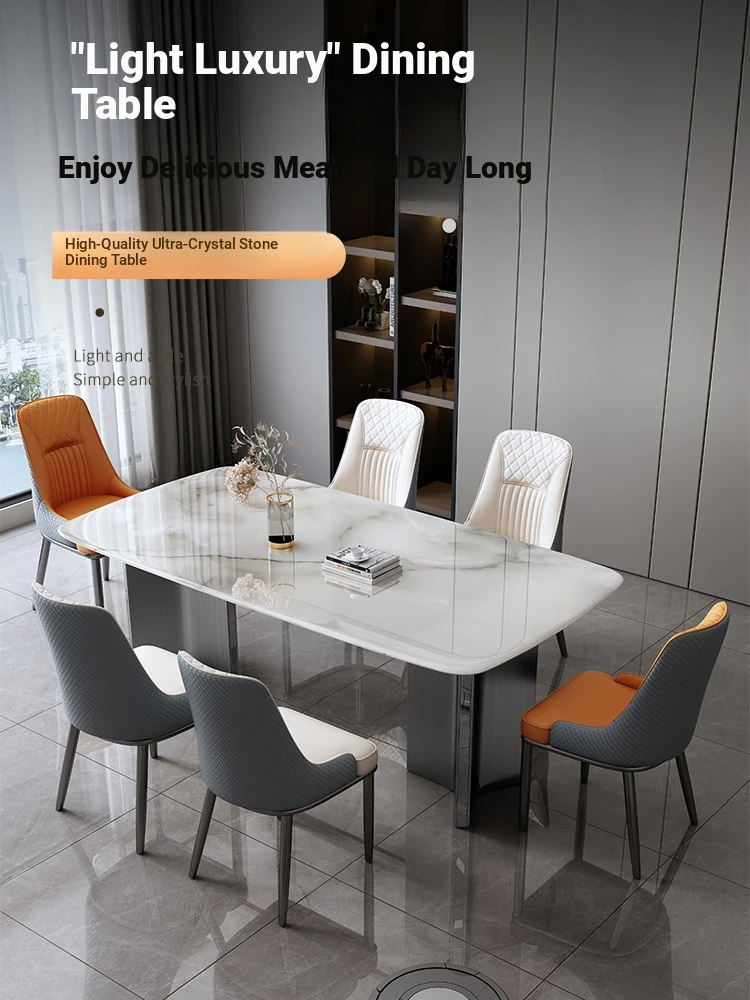 Modern Minimalist Luxury Ultra-Crystal Stone Dining Table and Chair Set - Rectangular Marble Dining Table for Small Homes, Perfect for Stylish Family Meals!
