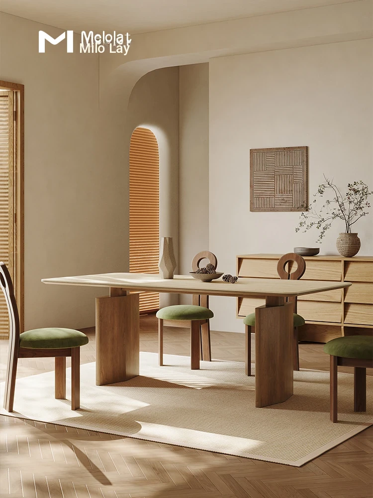 Melolat Italian-Inspired Luxurious Rock Slab Dining Table with Natural Ash Wood, Modern Minimalist Design, Rectangular Shape - Perfect for Home Dining with Stylish Chairs