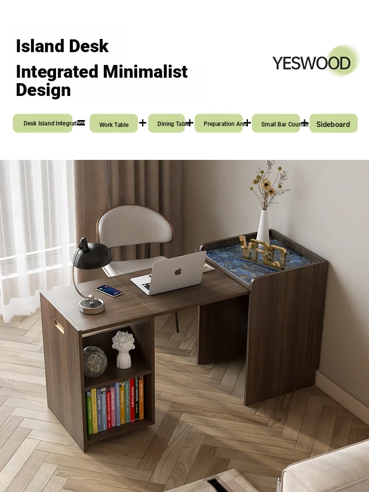 Japanese-Style Solid Wood Rock Panel Bar Table - Modern Movable Partition Dining Table for Small Spaces, Versatile Home Storage Cabinet for Living Room