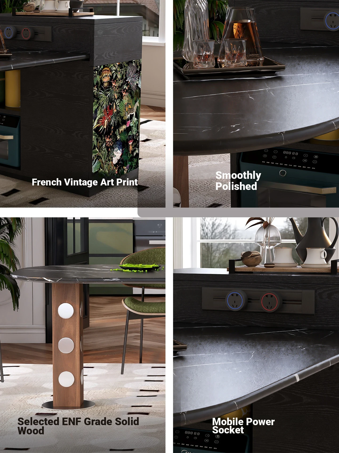 Walqi Solid Wood Extendable Island Dining Table with Integrated Rock Plate - Rustic Style, Multi-functional Bar Table for Home Use with Storage, Perfect for Living Room Gatherings.