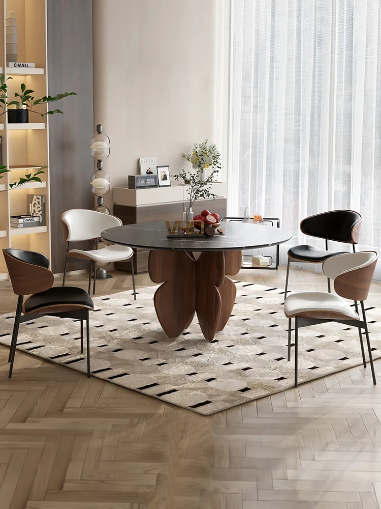 Nordic Solid Wood Dining Table with Rock Slab - Modern Minimalist Dining Set for Small Spaces, Perfect for Home and Study Room