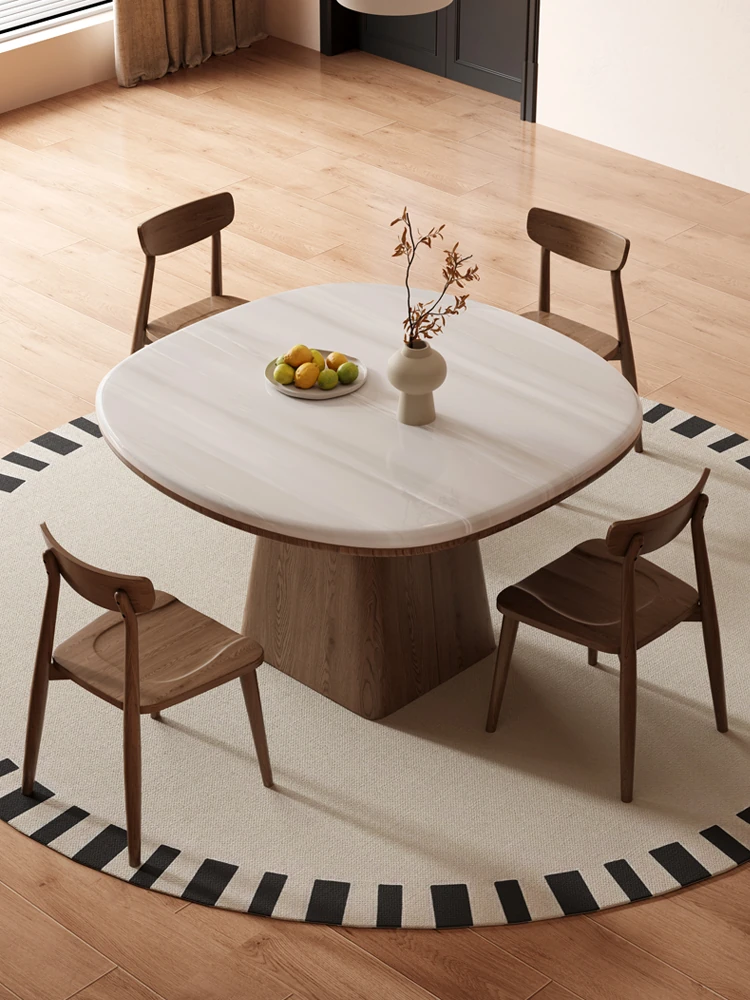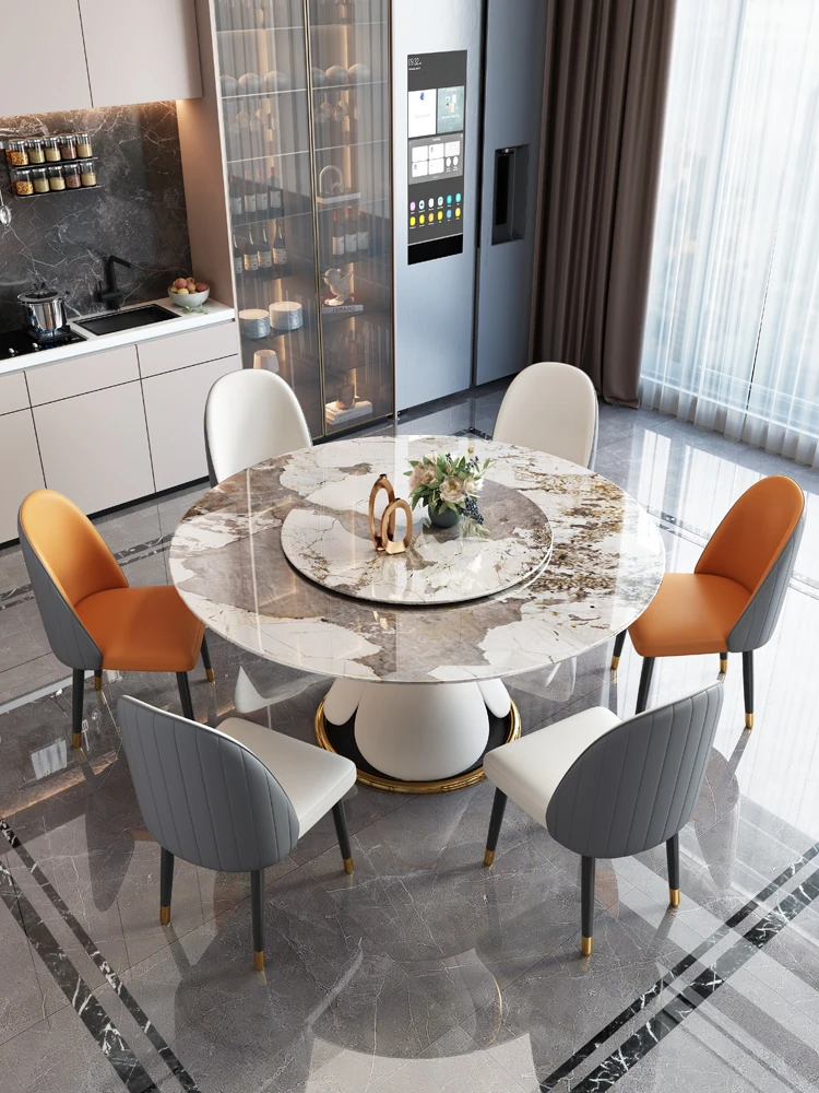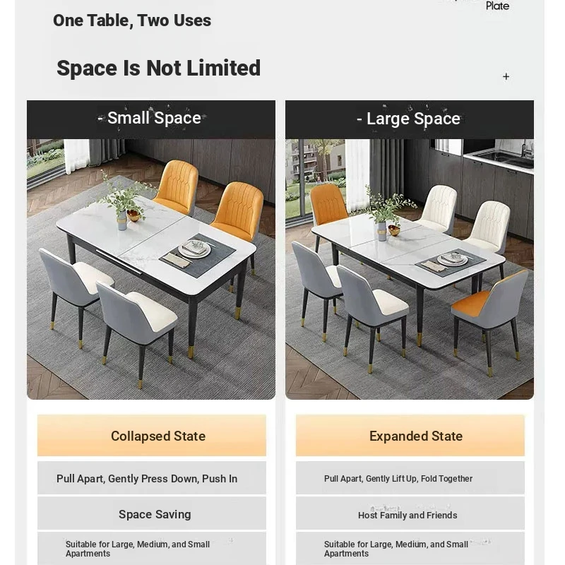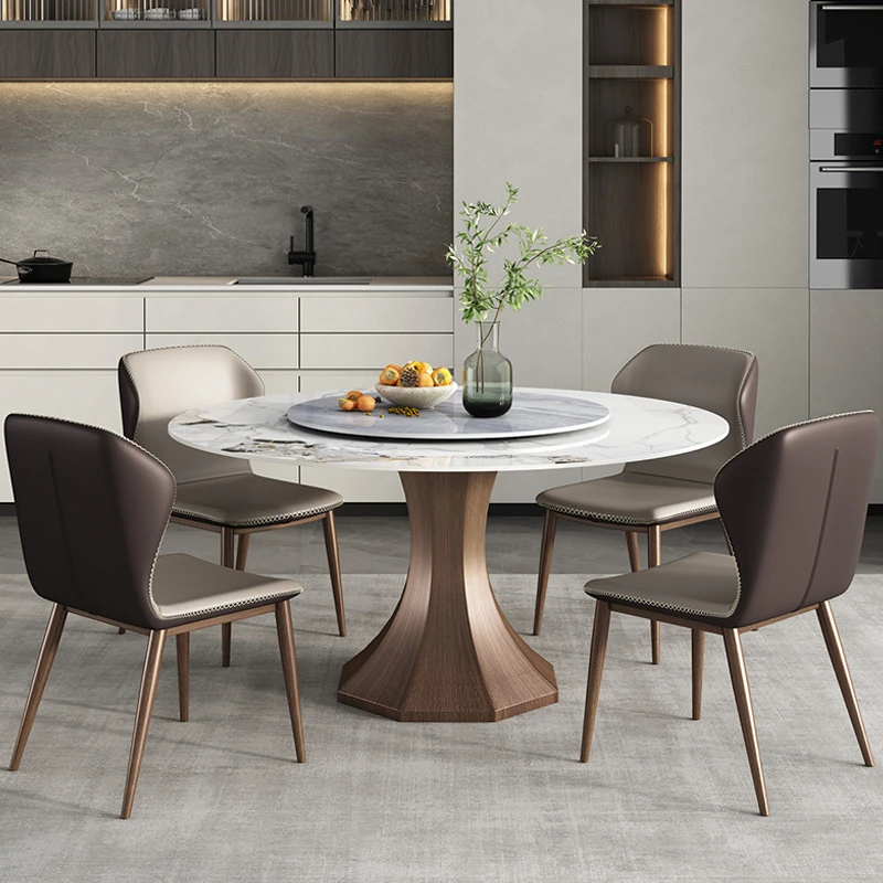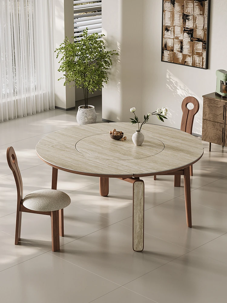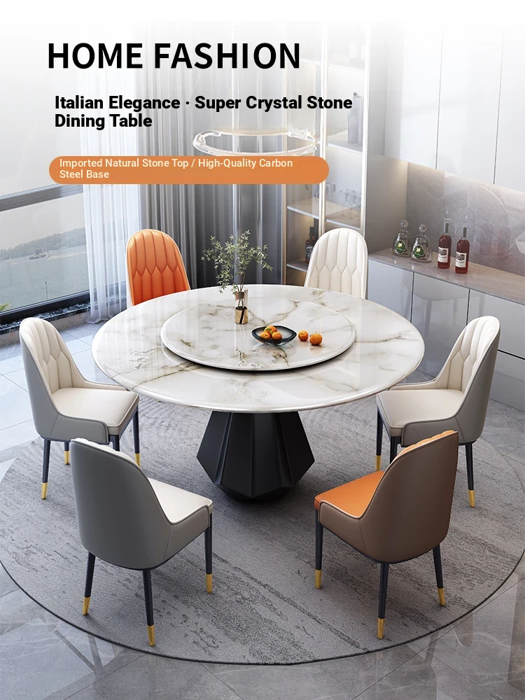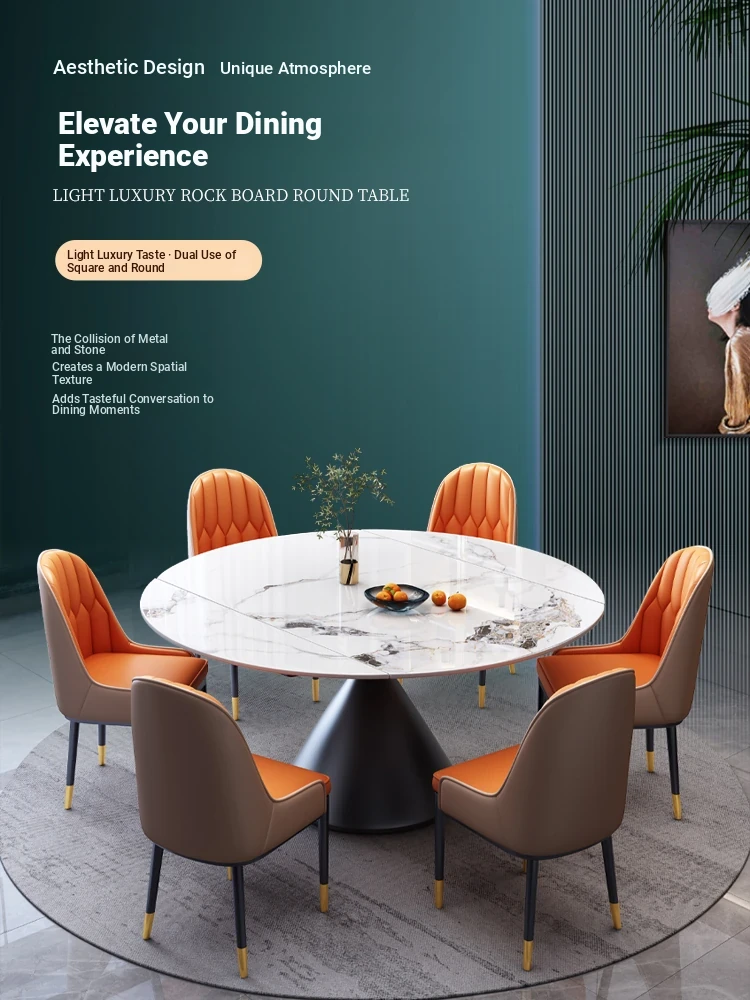 Stylish Luxury Rotating Rock Plate Dining Table and Chair Set - Extendable and Foldable, Round or Square Design for Modern Minimalist Home Dining