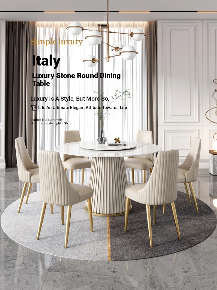 Elegant Italian-Style Marble Dining Table Set with Rotating Tray - 1.8m Round Table for 10 People, Perfect for Home and Hotel Use