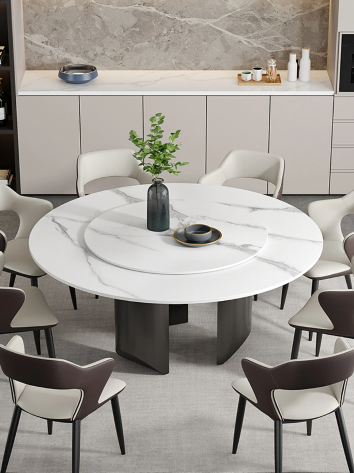 Elegant Italian Marble Round Dining Table for 10 - Luxurious Home Use with Electric Rotating Feature - Perfect for Spacious Villas and Gatherings