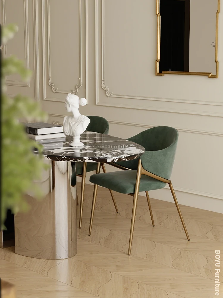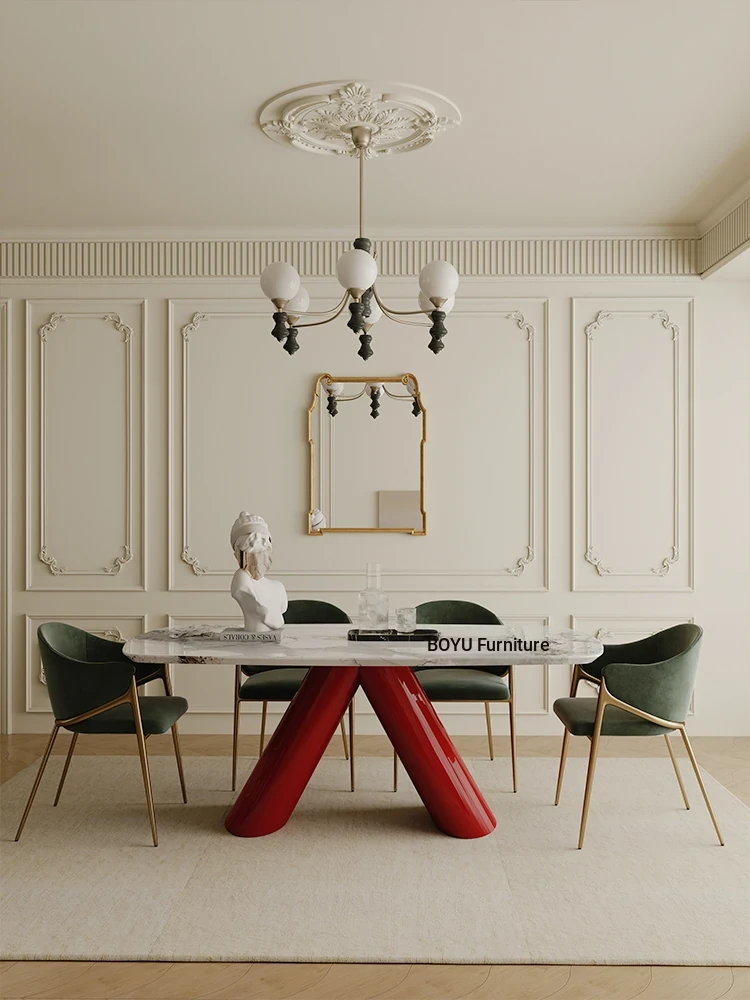 Boyu Furniture - Italian Light Luxury Dining Table, Durable & Spill-Resistant, Modern Cream Aesthetic, Designer Marble Luxe Table